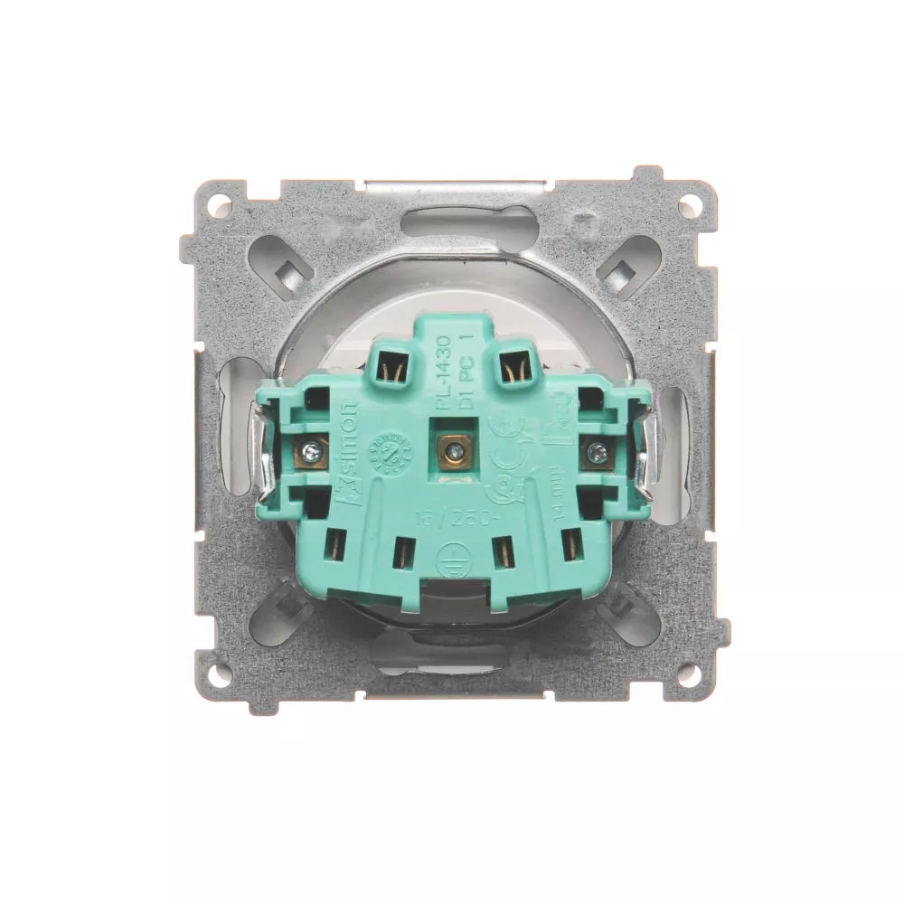 Simon Basic WMUW-00101x-1021 Gniazdo wtyczkowe bez uziemienia (moduł), z przesłonami torów prądowych 16A, 250V~, zaciski śrubowe; biały