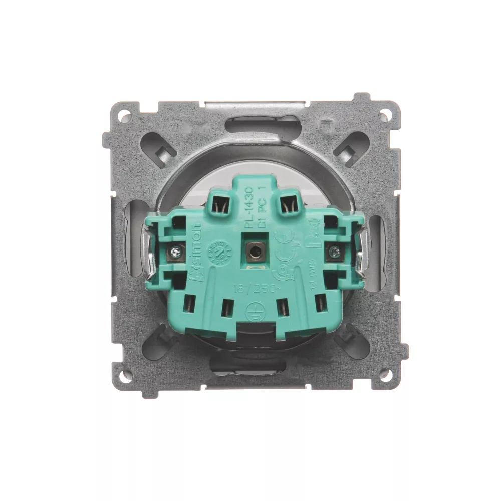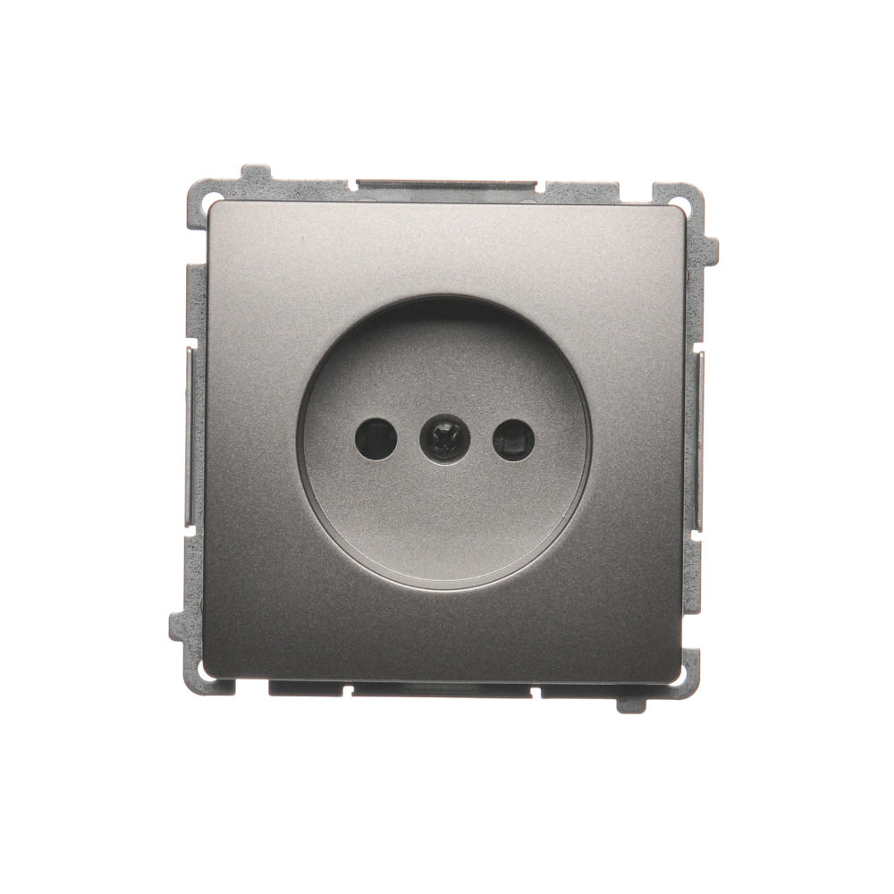 Simon Basic WMUW-00101x-H021 Gniazdo wtyczkowe bez uziemienia (moduł), z przesłonami torów prądowych 16A, 250V~, zaciski śrubowe; satynowy