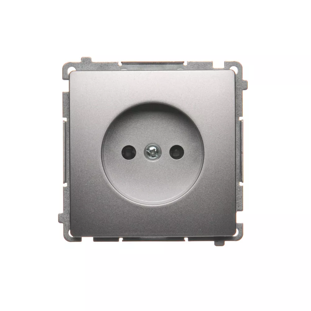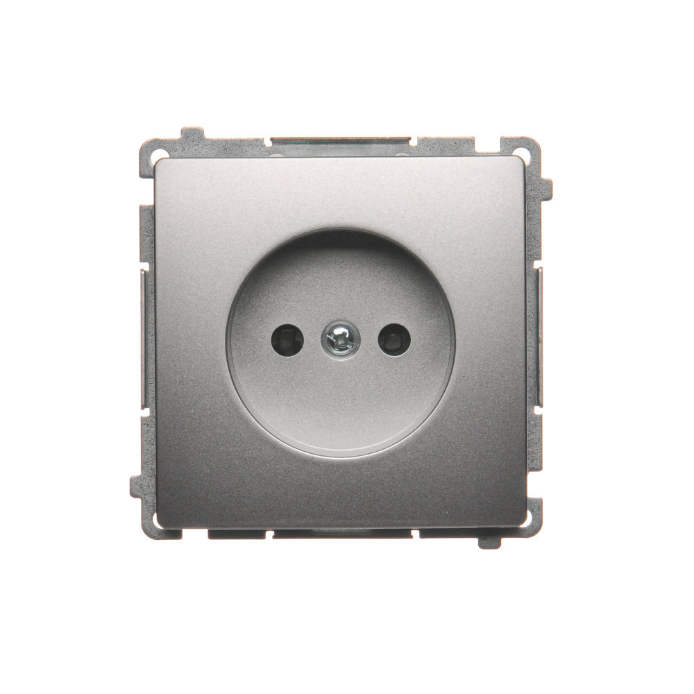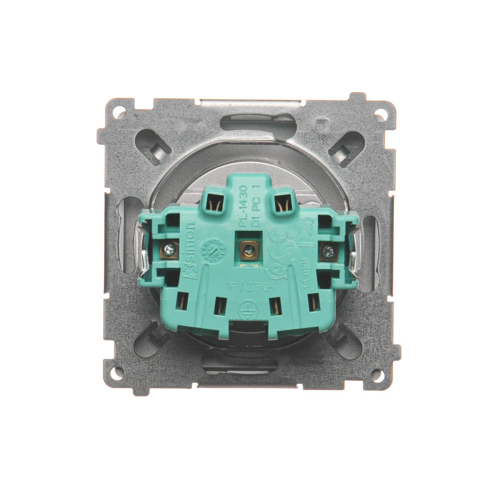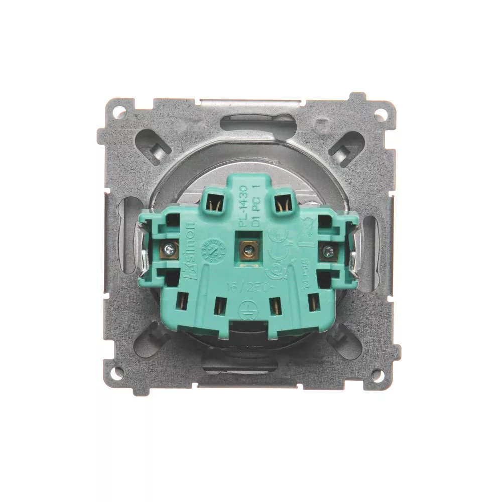 Simon Basic WMUW-00101x-4021 Gniazdo wtyczkowe bez uziemienia (moduł), z przesłonami torów prądowych 16A, 250V~, zaciski śrubowe; srebrny mat