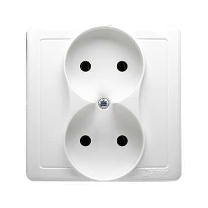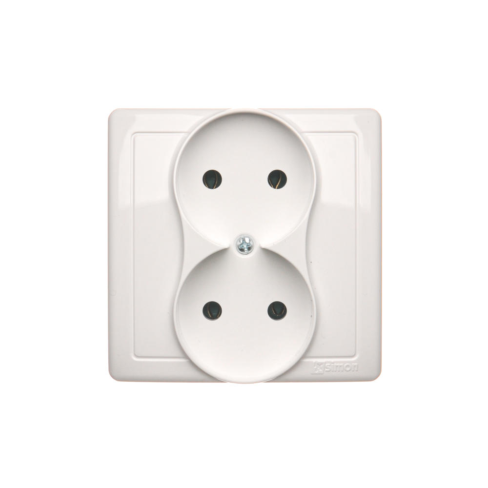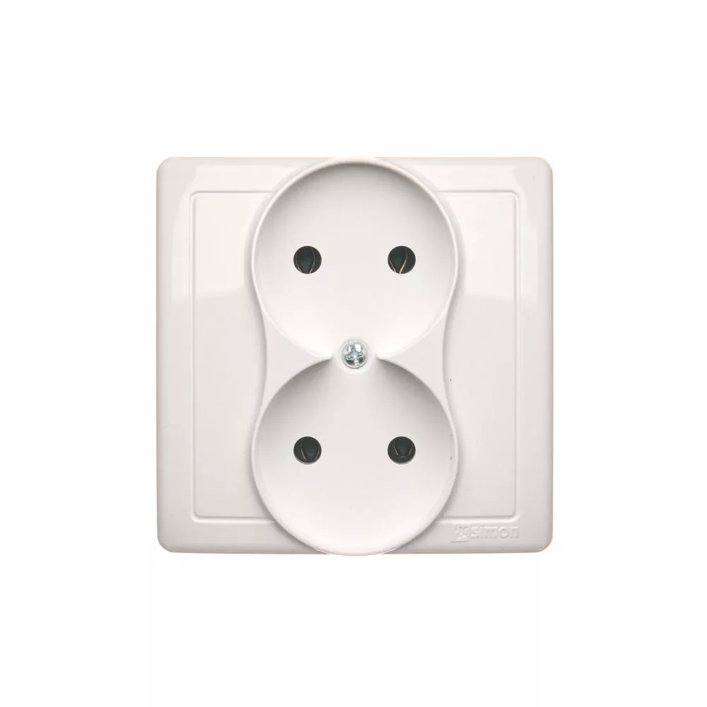 Simon Basic WMUW-10200x-1011 Gniazdo wtyczkowe bez uziemienia podwójne, monoblok, 16A, 250V~, zaciski śrubowe; biały Kompletne - nie do ramek