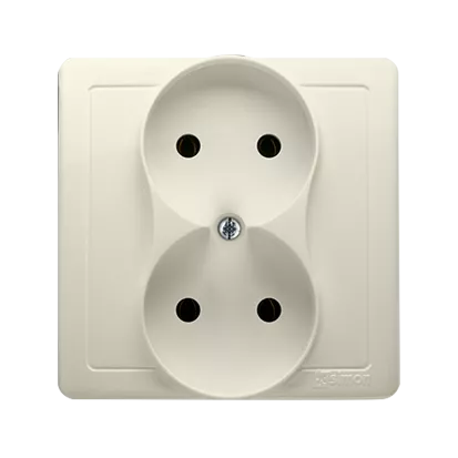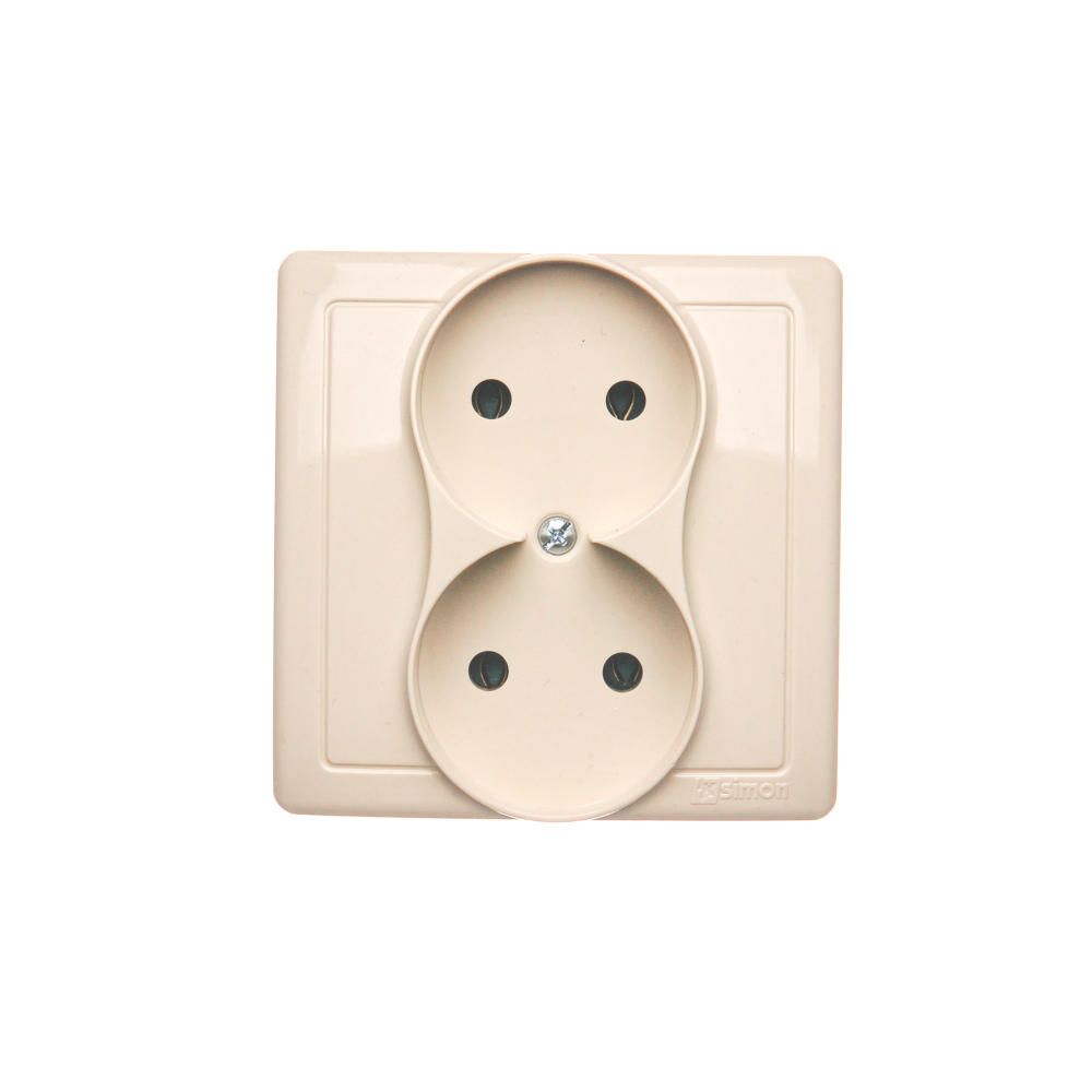 Simon Basic WMUW-10200x-9011 Gniazdo wtyczkowe bez uziemienia podwójne, monoblok, 16A, 250V~, zaciski śrubowe; beż Kompletne - nie do ramek