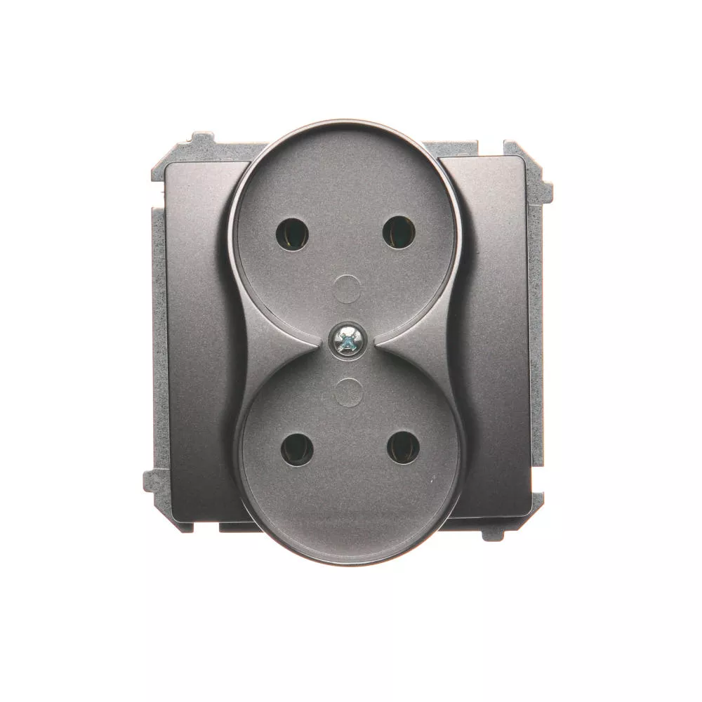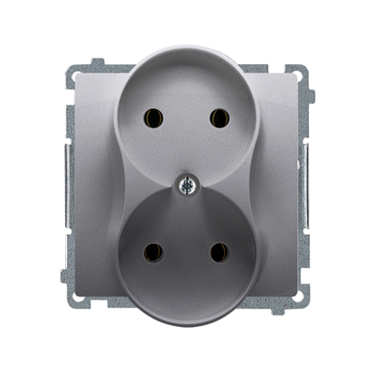 Simon Basic WMUW-00200M-J011 Gniazdo wtyczkowe podwójne bez uziemienia (moduł), Σ16A, 250V~, zaciski śrubowe; stal inox