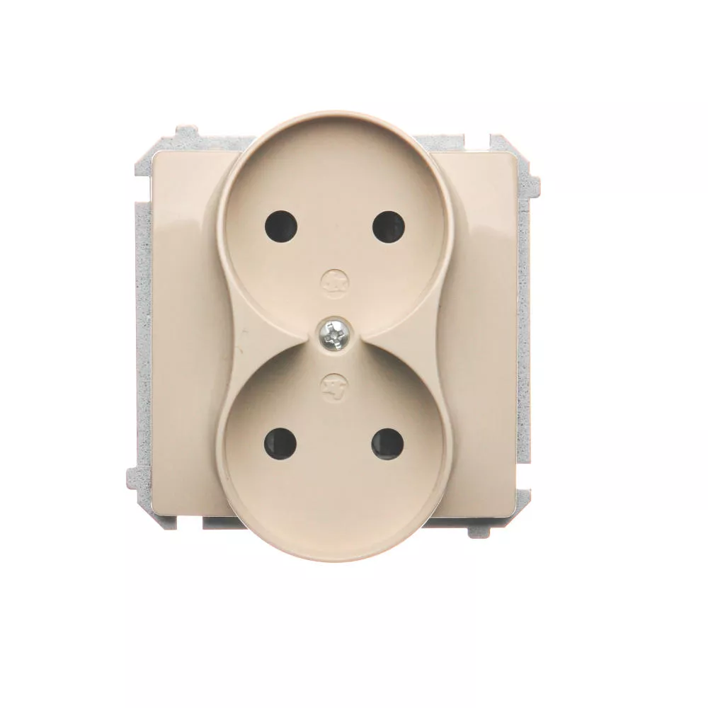 Simon Basic WMUW-00201M-9011 Gniazdo wtyczkowe podwójne bez uziemienia (moduł) z przesłonami torów prądowych, Σ16A, 250V~, zaciski śrubowe; beż