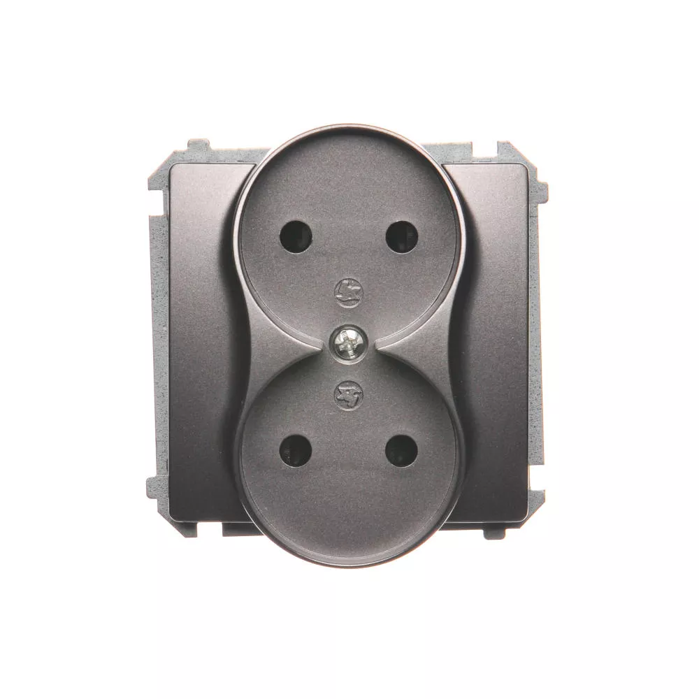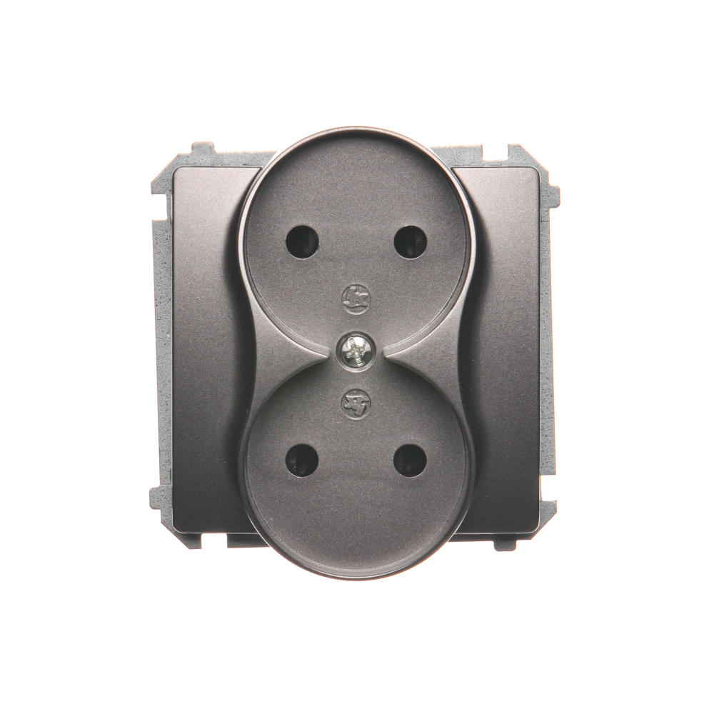 Simon Basic WMUW-00201M-J011 Gniazdo wtyczkowe podwójne bez uziemienia (moduł) z przesłonami torów prądowych, Σ16A, 250V~, zaciski śrubowe; stal inox
