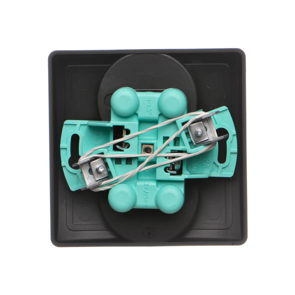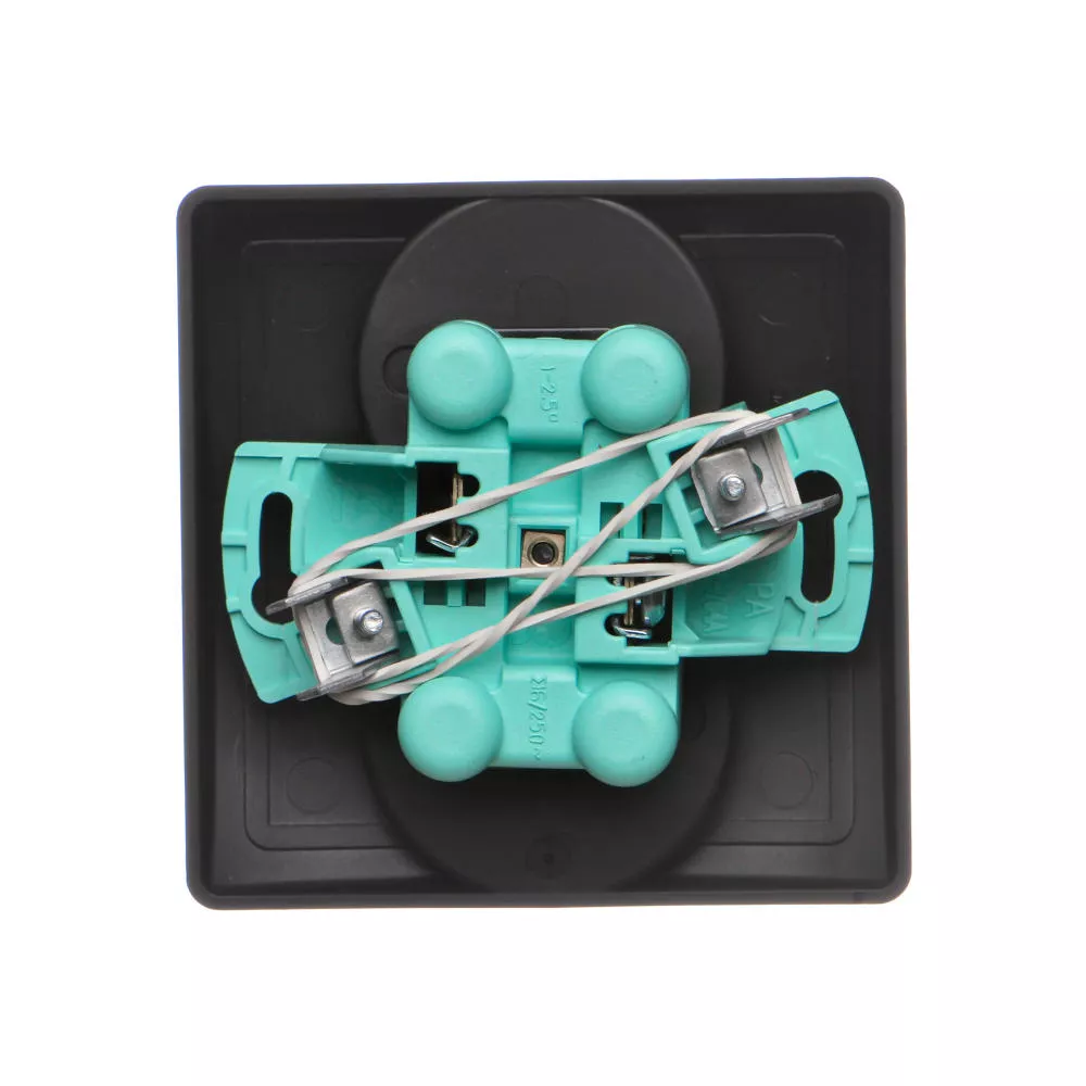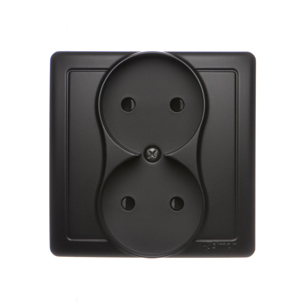 Simon Basic WMUW-10201x-Y011 Gniazdo wtyczkowe bez uziemienia podwójne, monoblok, z przesł.torów prądowych 16A, 250V~, zac.śrubowe; czarny Kompletne - nie do ramek
