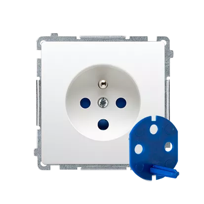 Simon Basic WMUW-01111x-1011 Gniazdo wtyczkowe DATA z uziemieniem i kluczem uprawniającym (moduł) 16A, 250V~, zaciski śrubowe; biały