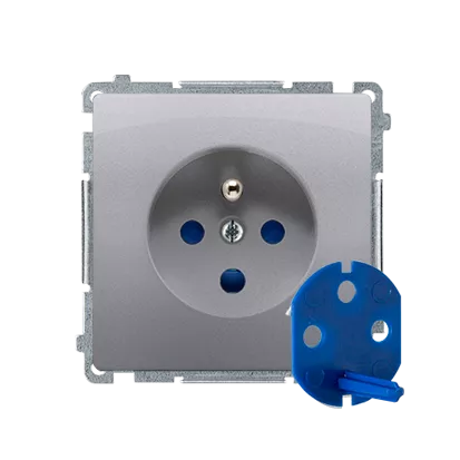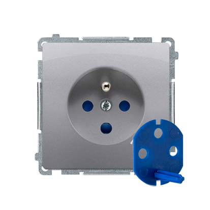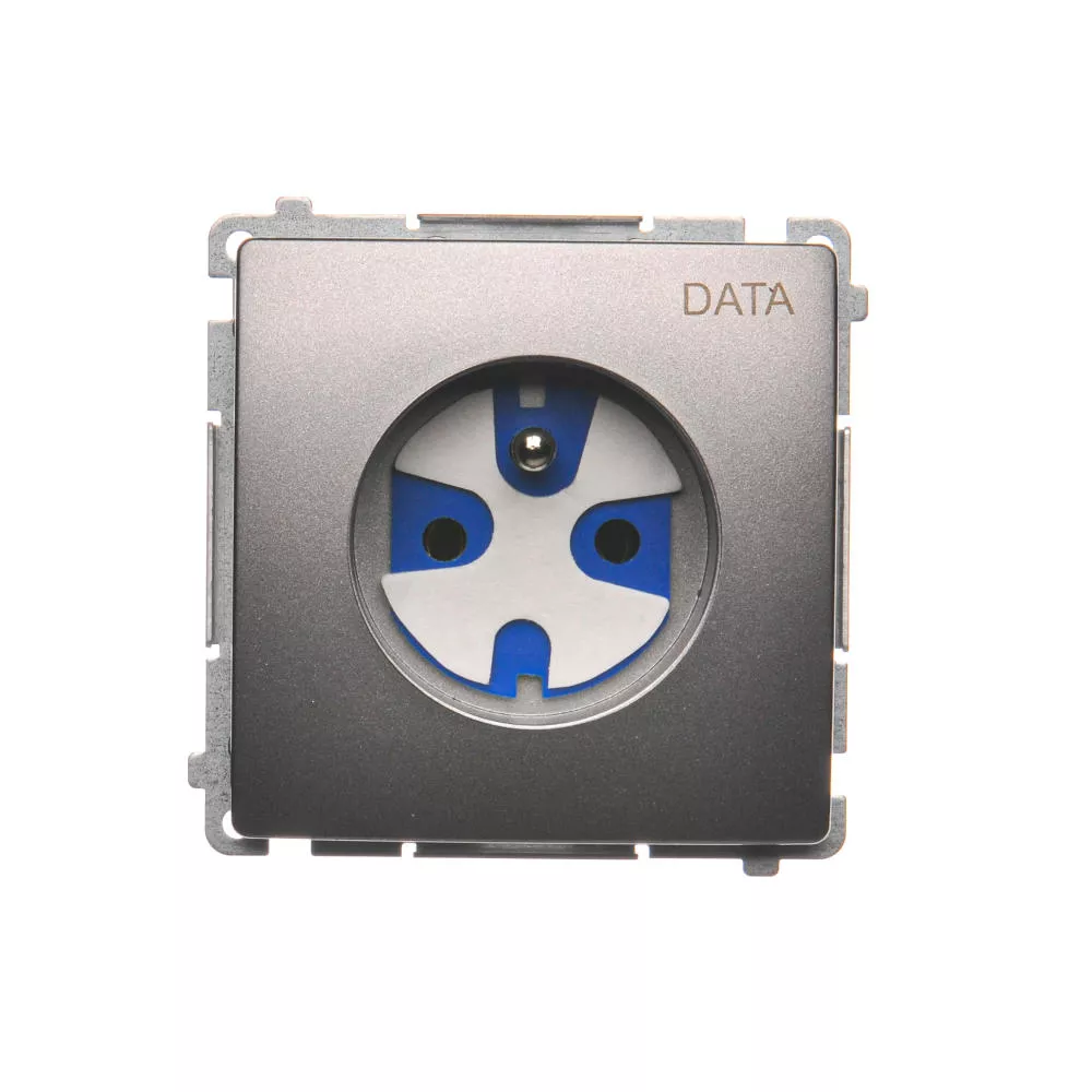 Simon Basic WMUW-01111x-J011 Gniazdo wtyczkowe DATA z uziemieniem i kluczem uprawniającym (moduł) 16A, 250V~, zaciski śrubowe; stal inox