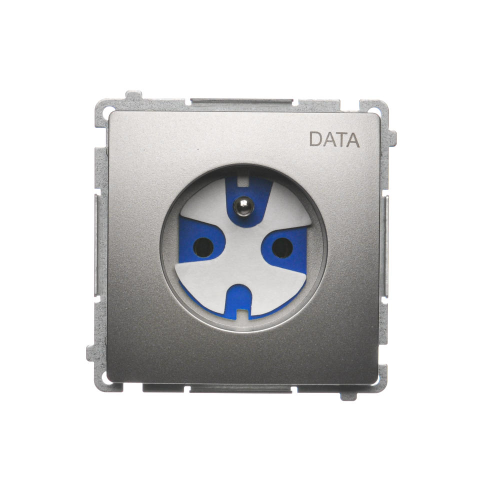 Simon Basic WMUW-01111x-H011 Gniazdo wtyczkowe DATA z uziemieniem i kluczem uprawniającym (moduł) 16A, 250V~, zaciski śrubowe; satynowy