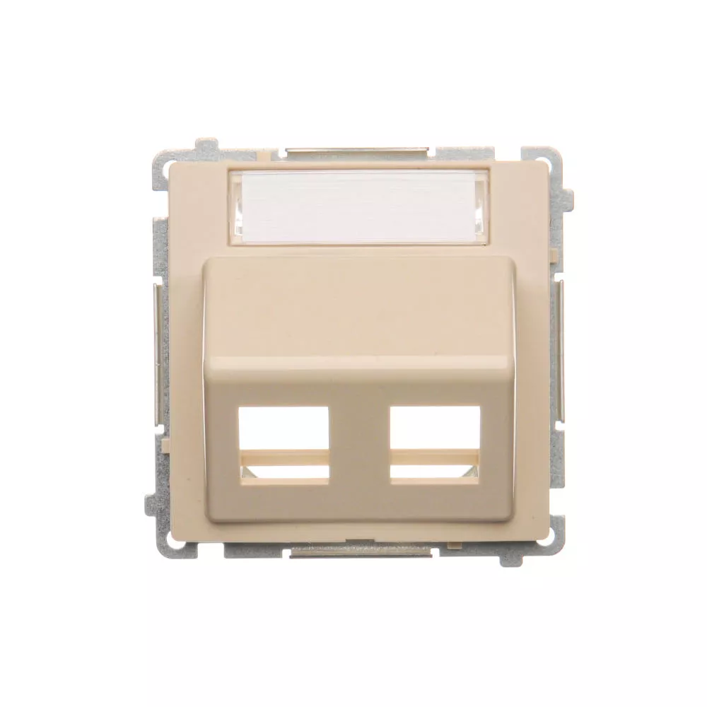 Simon Basic WMUK-P2x3xx-9013 Pokrywa gniazd teleinformatycznych na Keystone skośna podwójna z polem opisowym. Montaż na łapki lub wkręty; beż