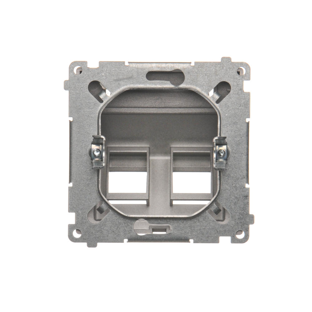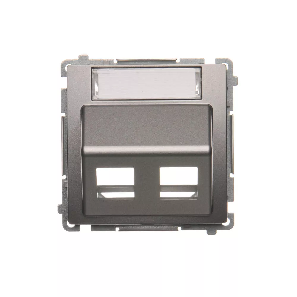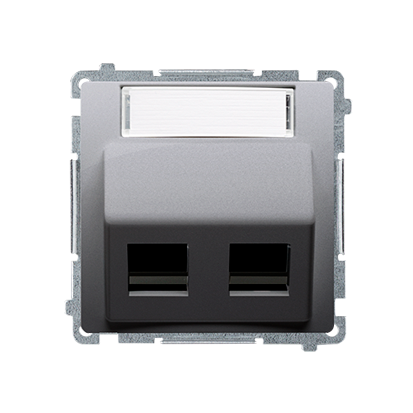 Simon Basic WMUK-P2x3xx-J013 Pokrywa gniazd teleinformatycznych na Keystone skośna podwójna z polem opisowym. Montaż na łapki lub wkręty; stal inox