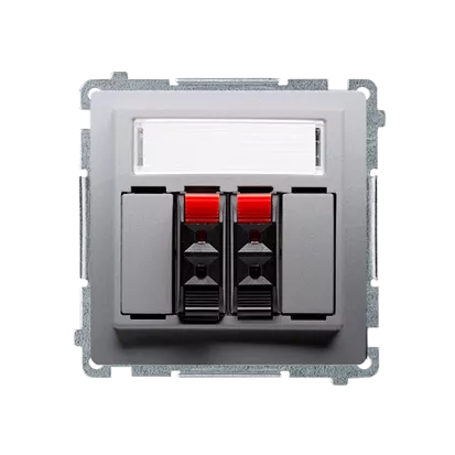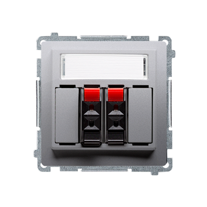 Simon Basic WMUG-02000x-4011 Gniazdo głośnikowe 2-krotne z polem opisowym (moduł). Przekrój przew.dla wejścia i wyjścia 2,5 mm2. Mocowanie na łapki i wkręty; srebrny mat