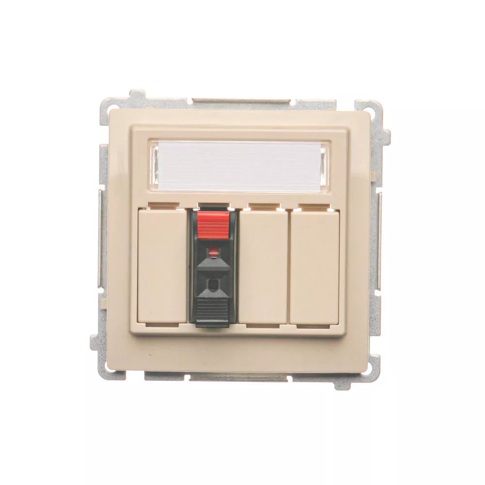 Simon Basic WMUG-01000x-9011 Gniazdo głośnikowe 1-krotne z polem opisowym (moduł). Przekrój przew. dla wejścia i wyjścia 2,5 mm2. Mocowanie na łapki i wkręty; beż