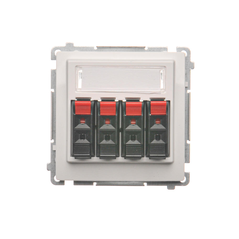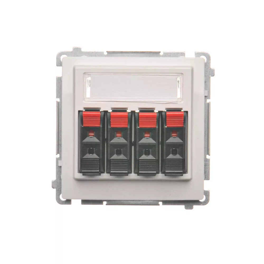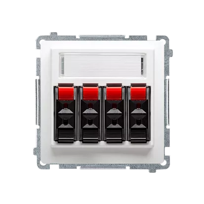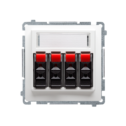 Simon Basic WMUG-04000x-1011 Gniazdo głośnikowe 4-krotne z polem opisowym (moduł). Do podłączenia 4 kolumn głośnikowych. Mocowanie gniazda na łapki i wkręty; biały