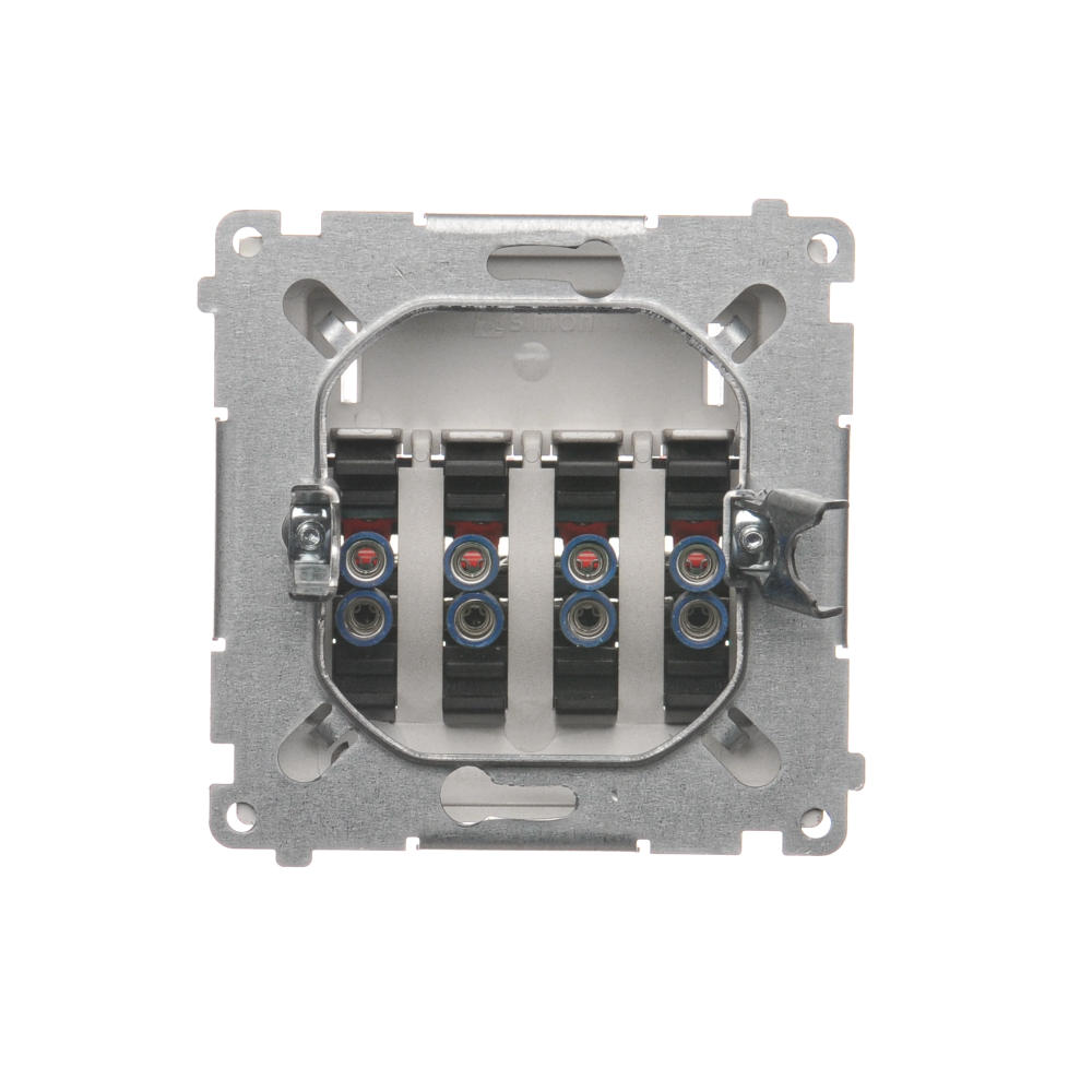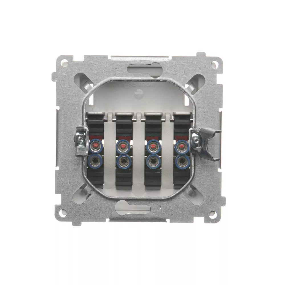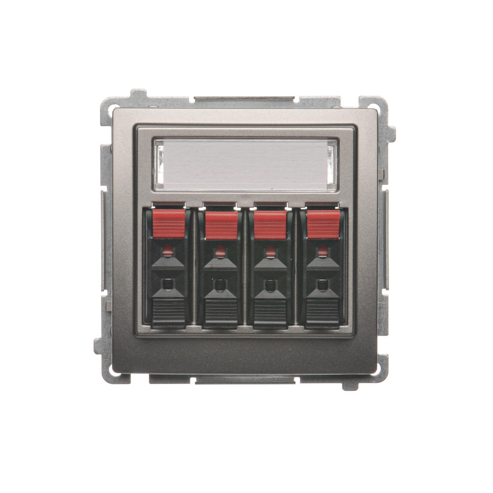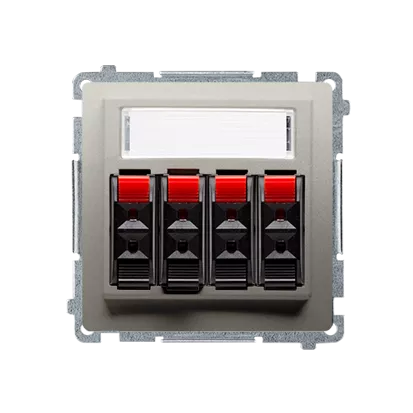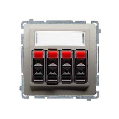 Simon Basic WMUG-04000x-H011 Gniazdo głośnikowe 4-krotne z polem opisowym (moduł). Do podłączenia 4 kolumn głośnikowych. Mocowanie gniazda na łapki i wkręty; satynowy