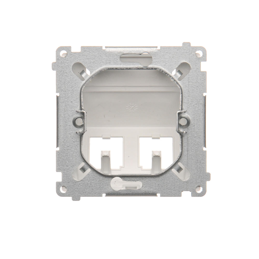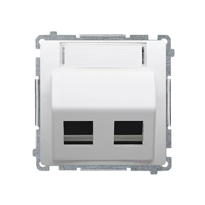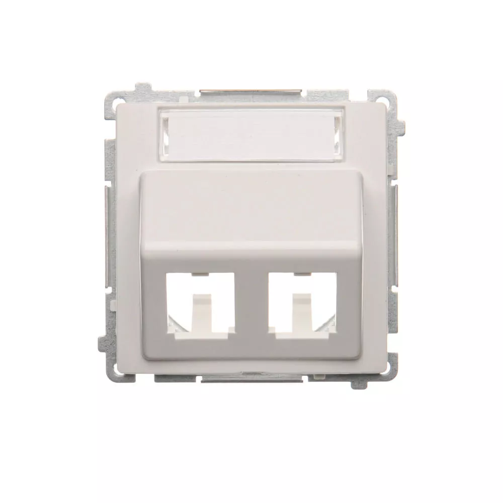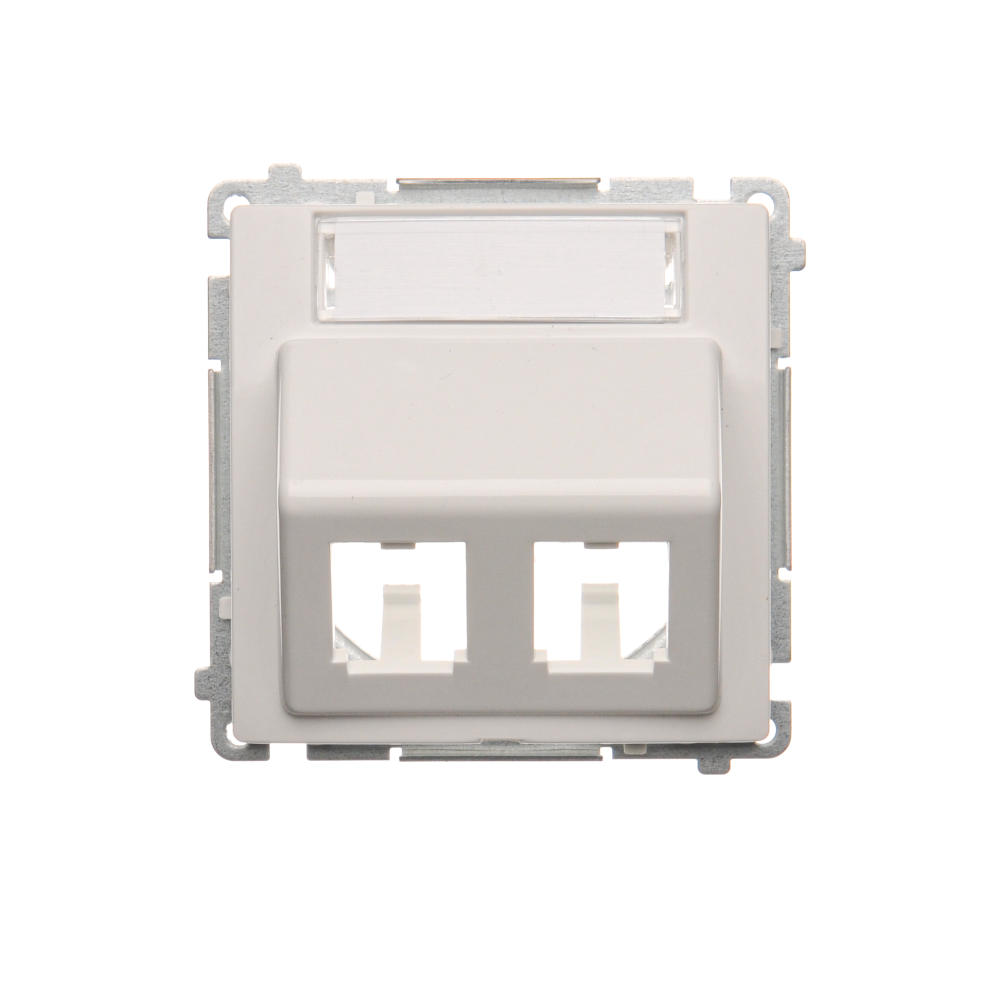 Simon Basic WMUK-P2xP0x-1013 Pokrywa gniazd teleinformatycznych na wkłady RJ typu: Panduit, skośna podwójna z polem opisowym. Montaż do puszki na wkręty; biały