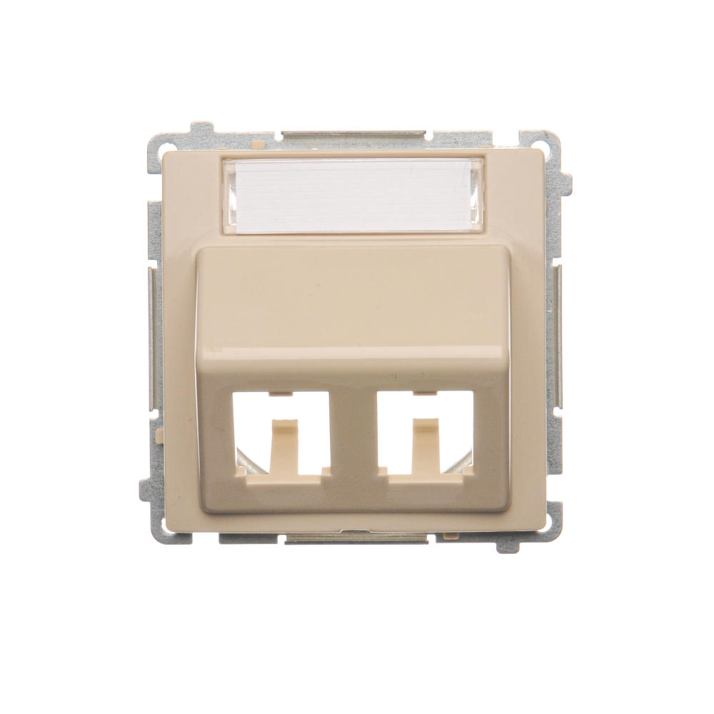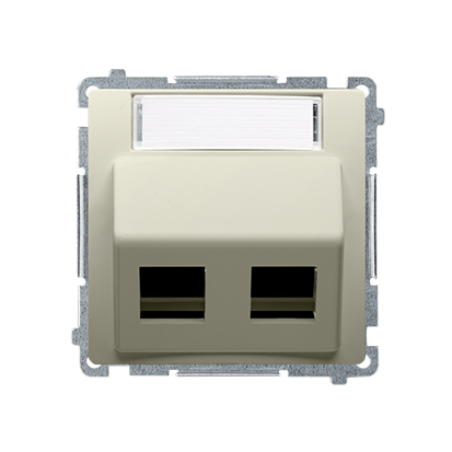 Simon Basic WMUK-P2xP0x-9013 Pokrywa gniazd teleinformatycznych na wkłady RJ typu: Panduit, skośna podwójna z polem opisowym. Montaż do puszki na wkręty; beż