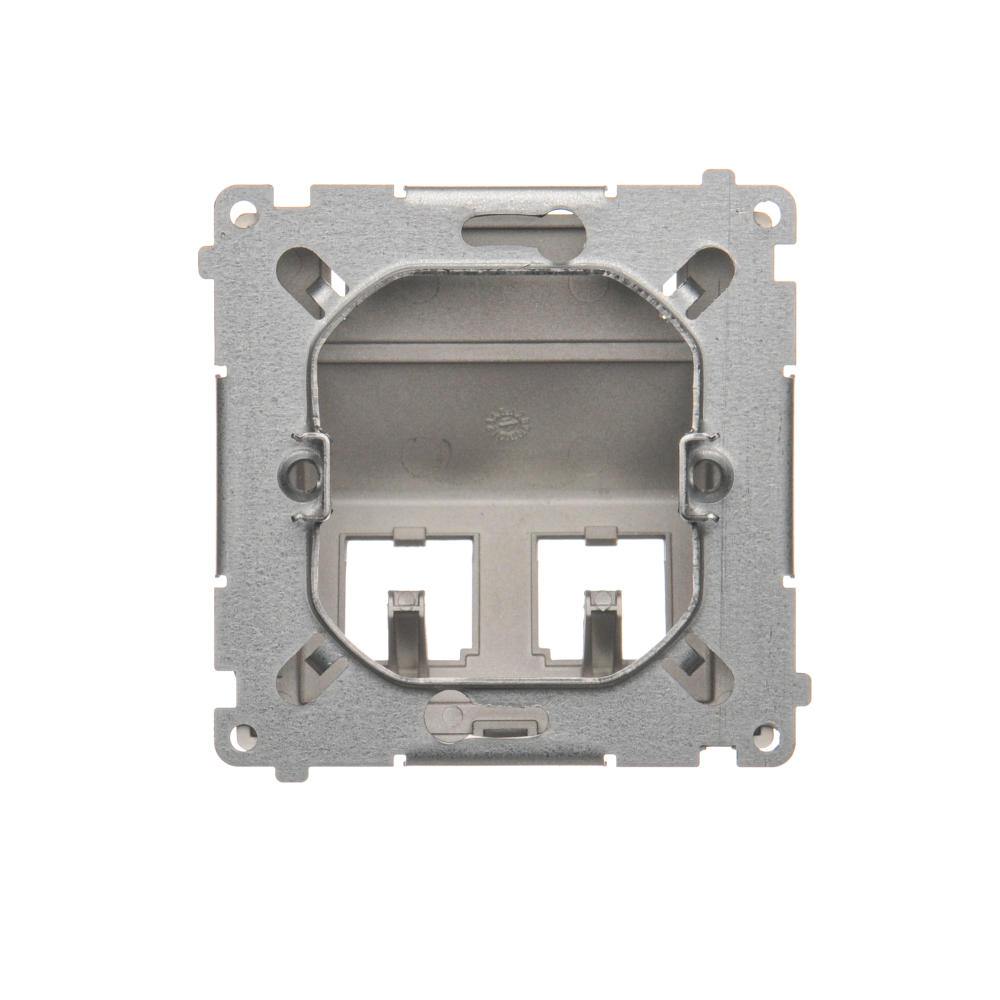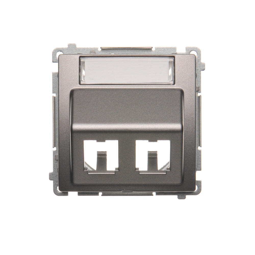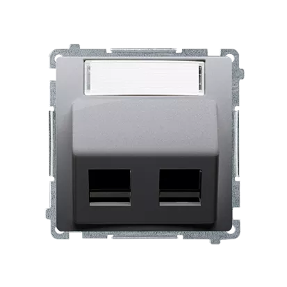 Simon Basic WMUK-P2xP0x-J013 Pokrywa gniazd teleinformatycznych na wkłady RJ typu: Panduit, skośna podwójna z polem opisowym. Montaż do puszki na wkręty; stal inox
