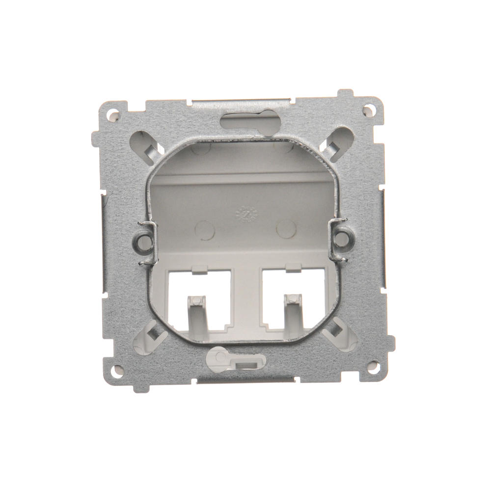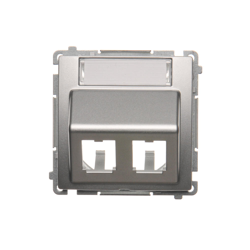 Simon Basic WMUK-P2xP0x-4013 Pokrywa gniazd teleinformatycznych na wkłady RJ typu: Panduit, skośna podwójna z polem opisowym. Montaż do puszki na wkręty; srebrny mat