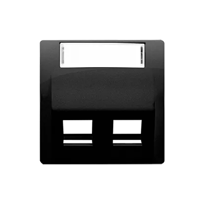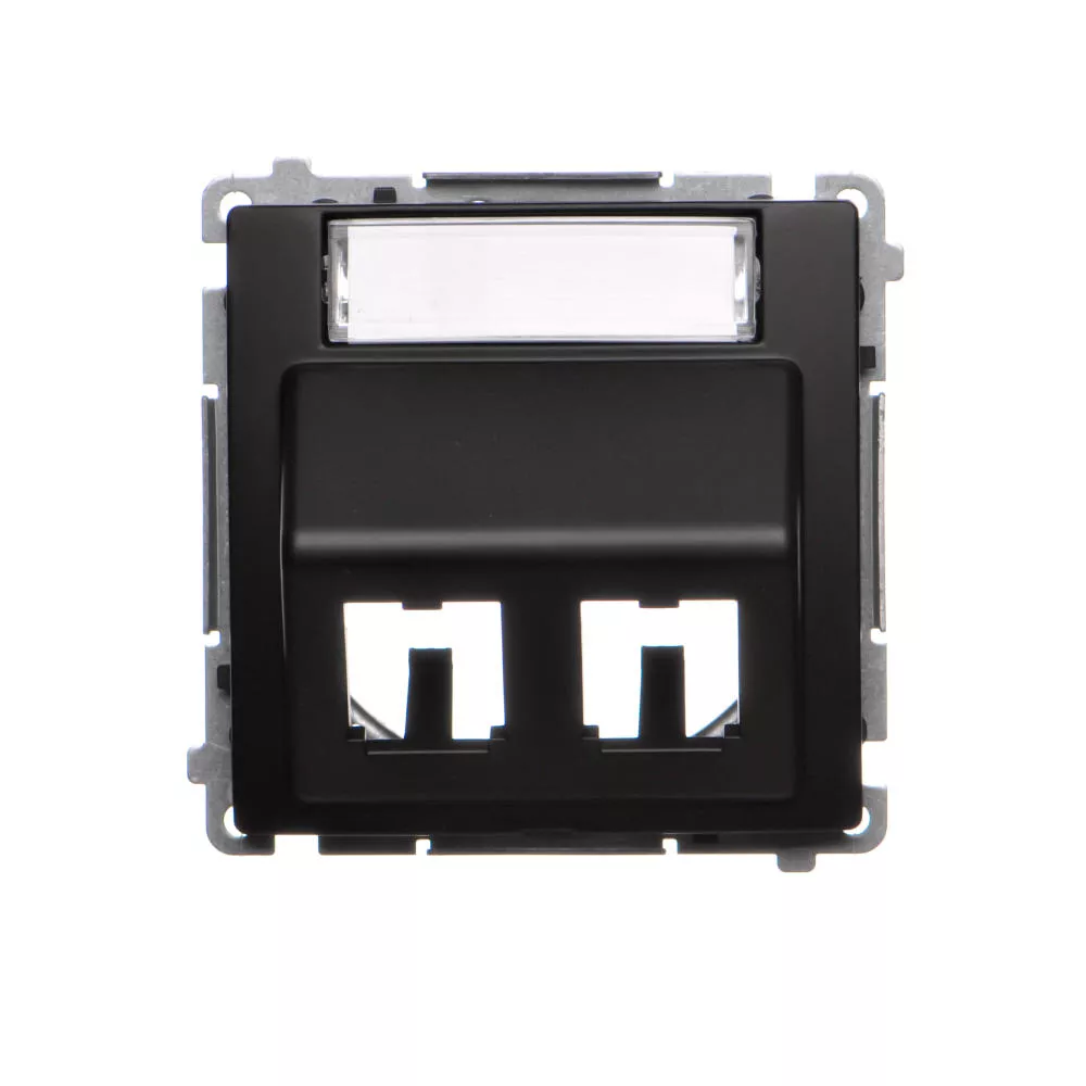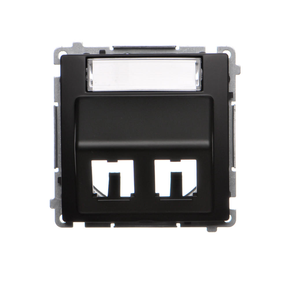 Simon Basic WMUK-P2xP0x-Y013 Pokrywa gniazd teleinformatycznych na wkłady RJ typu: Panduit, skośna podwójna z polem opisowym. Montaż do puszki na wkręty; czarny