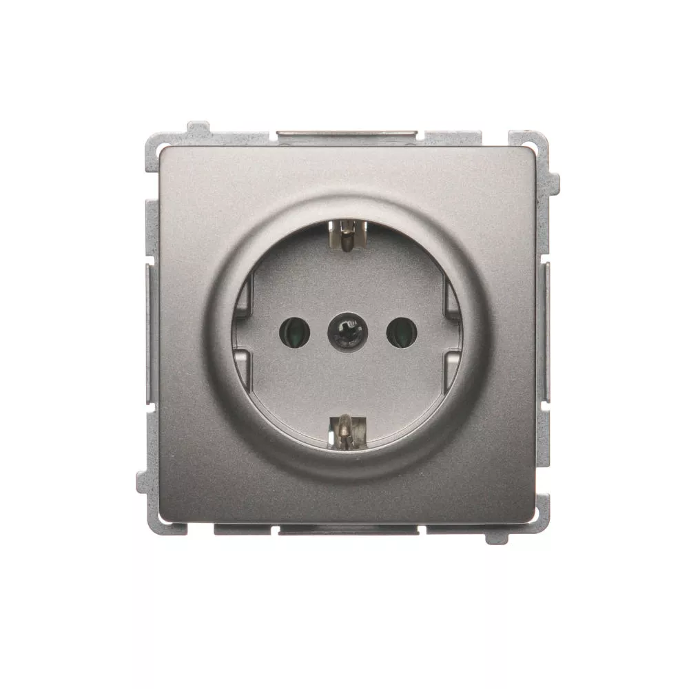 Simon Basic WMUW-02110x-H011 Gniazdo wtyczkowe z uziemieniem Schuko (moduł) 16A, 250V~, zaciski śrubowe; satynowy