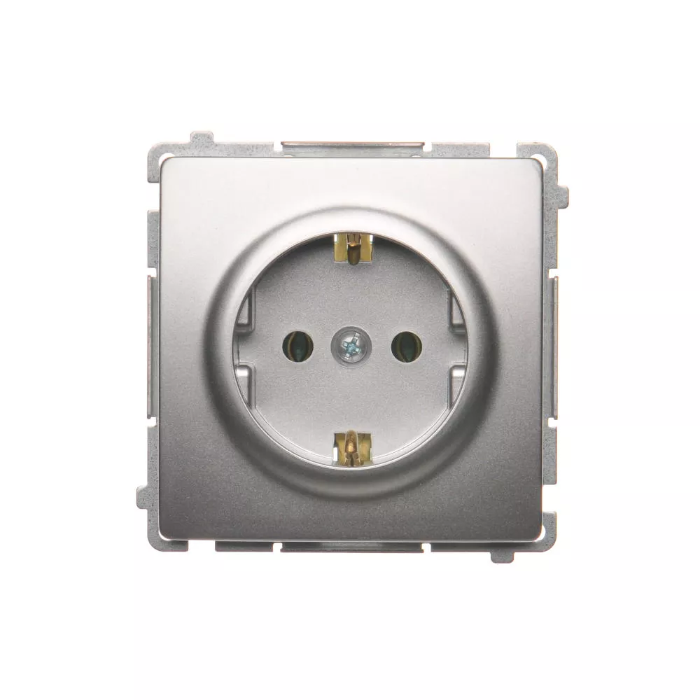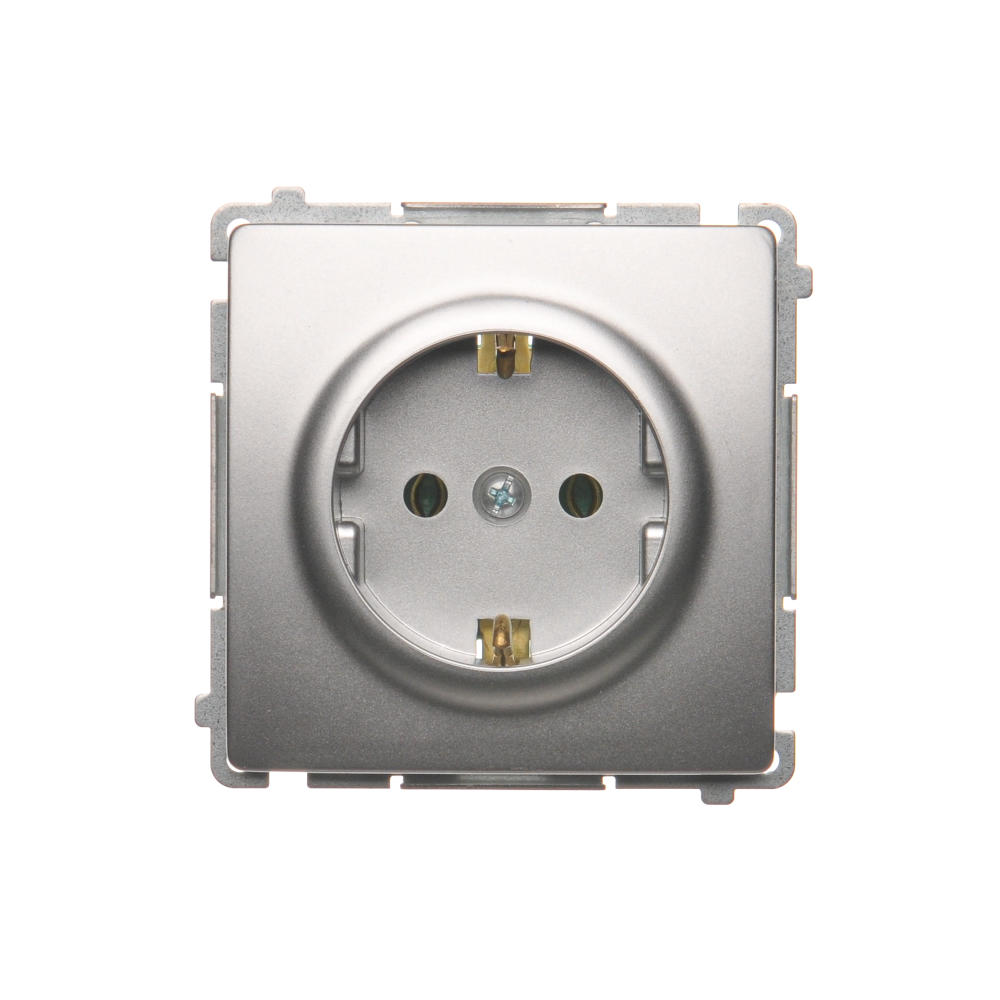 Simon Basic WMUW-02110x-4011 Gniazdo wtyczkowe z uziemieniem Schuko (moduł) 16A, 250V~, zaciski śrubowe; srebrny mat