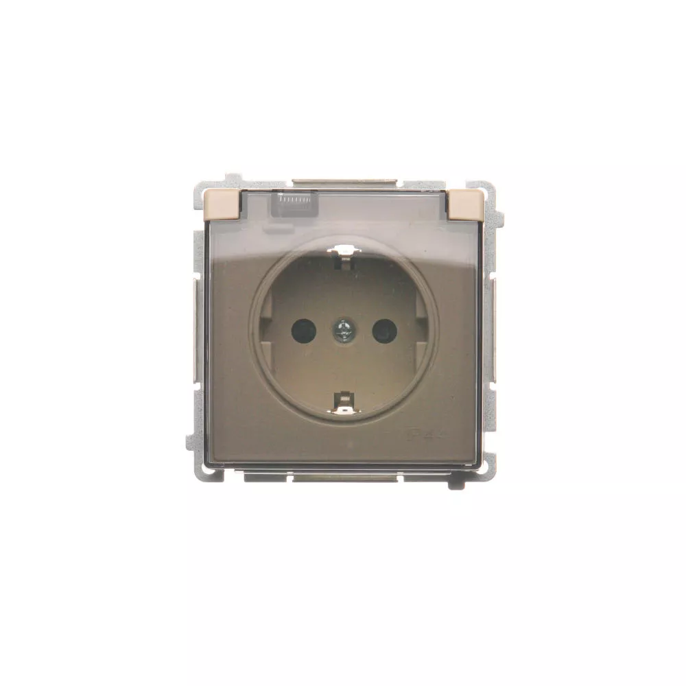 Simon Basic WMBW-53111x-9011 Gniazdo wtyczkowe Schuko do wersji IP44 z przesłonami (moduł) 16A, 250V~,zaciski śrubowe; klapka transparentna; beż