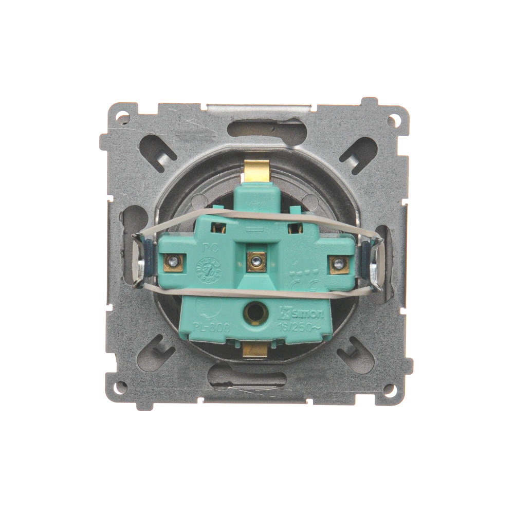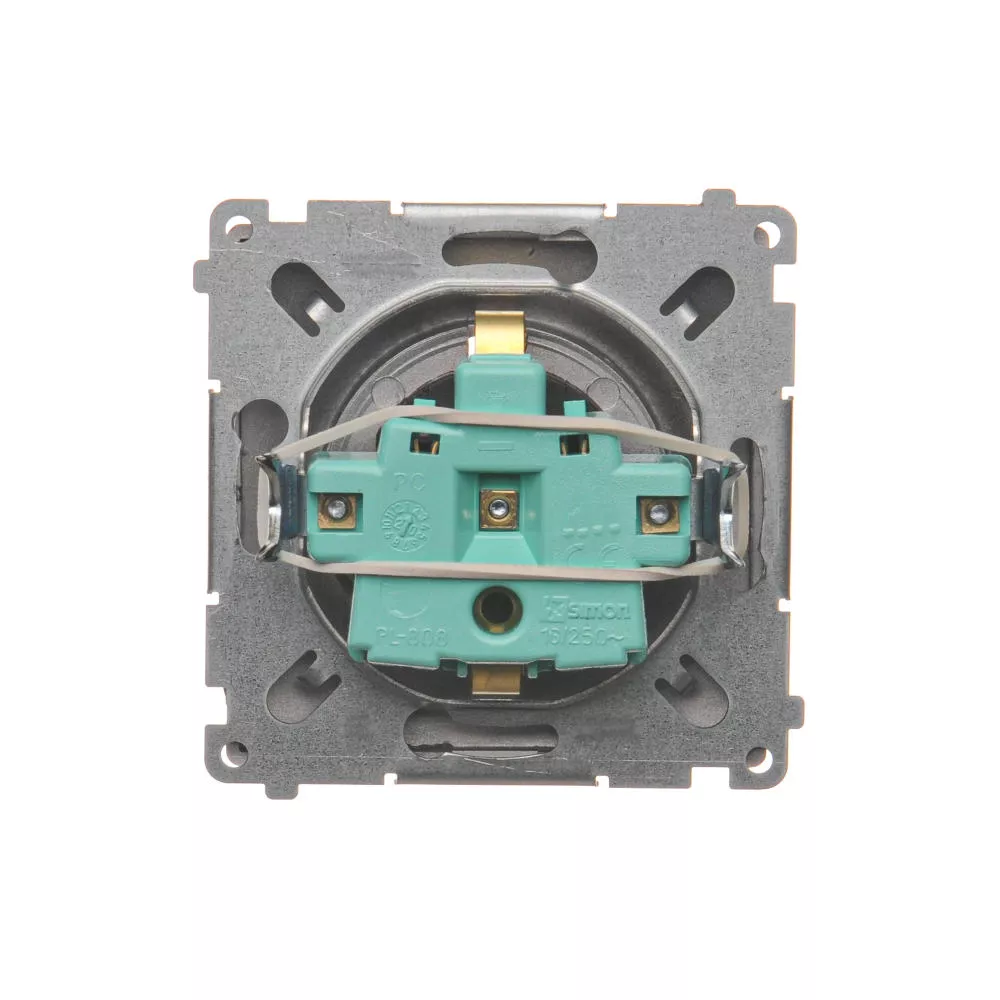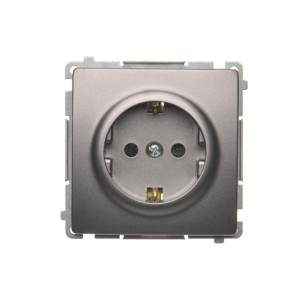 Simon Basic WMUW-02111x-J011 Gniazdo wtyczkowe z uziemieniem Schuko (moduł) z przesłonami torów prądowych,16A, 250V~, zaciski śrubowe; stal inox