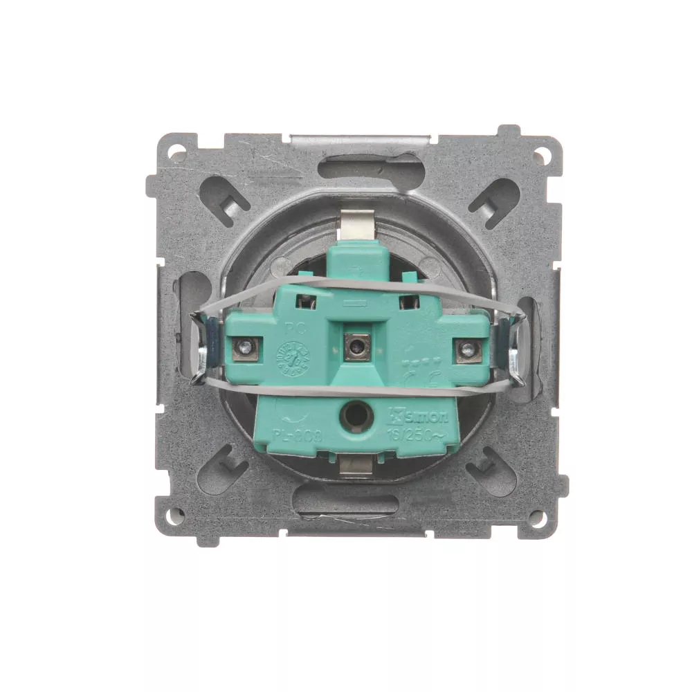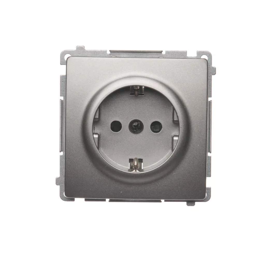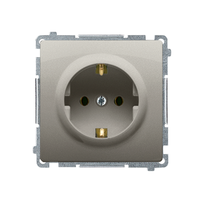 Simon Basic WMUW-02111x-H011 Gniazdo wtyczkowe z uziemieniem Schuko (moduł) z przesłonami torów prądowych,16A, 250V~, zaciski śrubowe; satynowy
