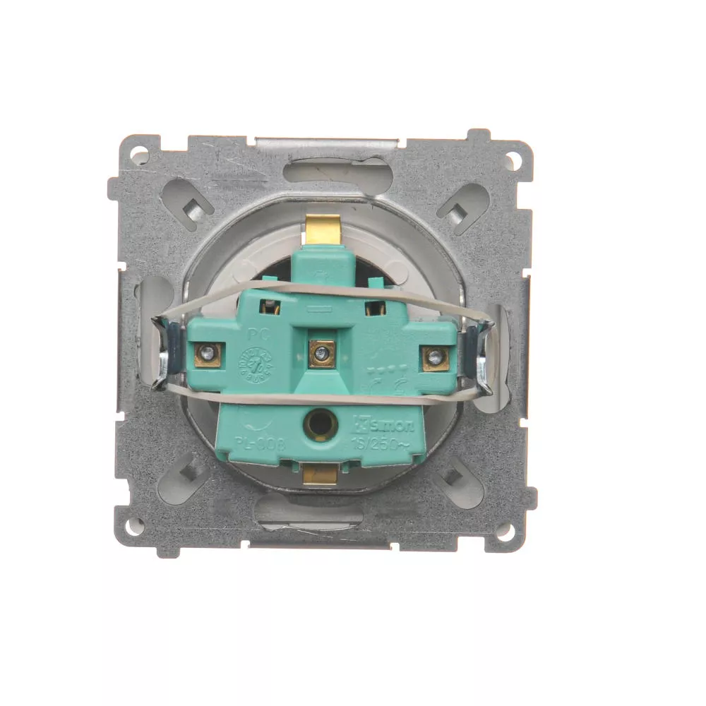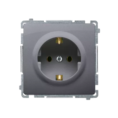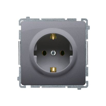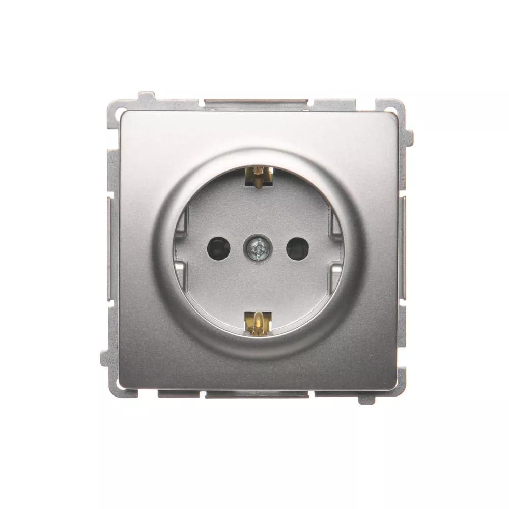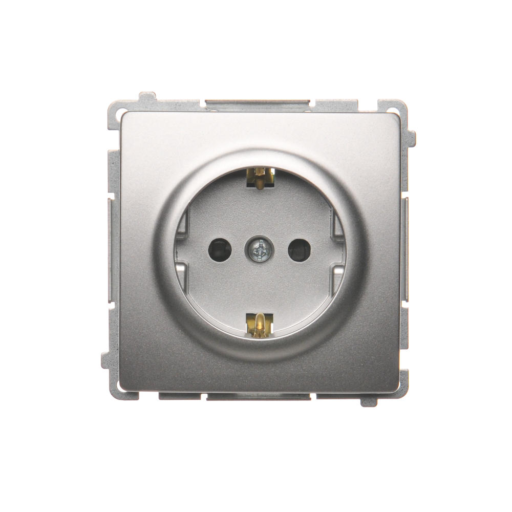 Simon Basic WMUW-02111x-4011 Gniazdo wtyczkowe z uziemieniem Schuko (moduł) z przesłonami torów prądowych,16A, 250V~, zaciski śrubowe; srebrny mat