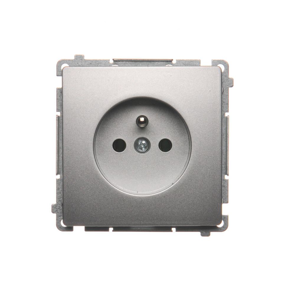 Simon Basic WMUW-00110x-4021 Gniazdo wtyczkowe z uziemieniem (moduł) 16A, 250V~, zaciski śrubowe; srebrny mat