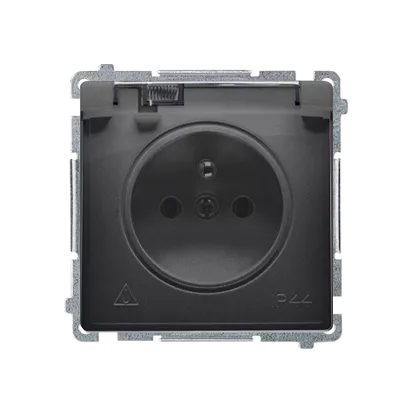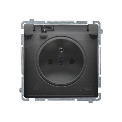 Simon Basic WMUW-53110x-Y021 Gniazdo wtyczkowe z uziemieniem, bryzgoszczelne IP44 (moduł) 16A, 250V~, zaciski śrubowe. Klapka transparentna; czarny