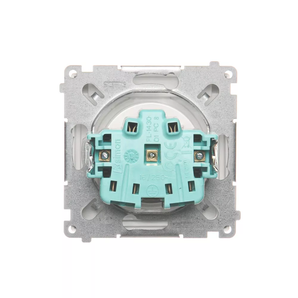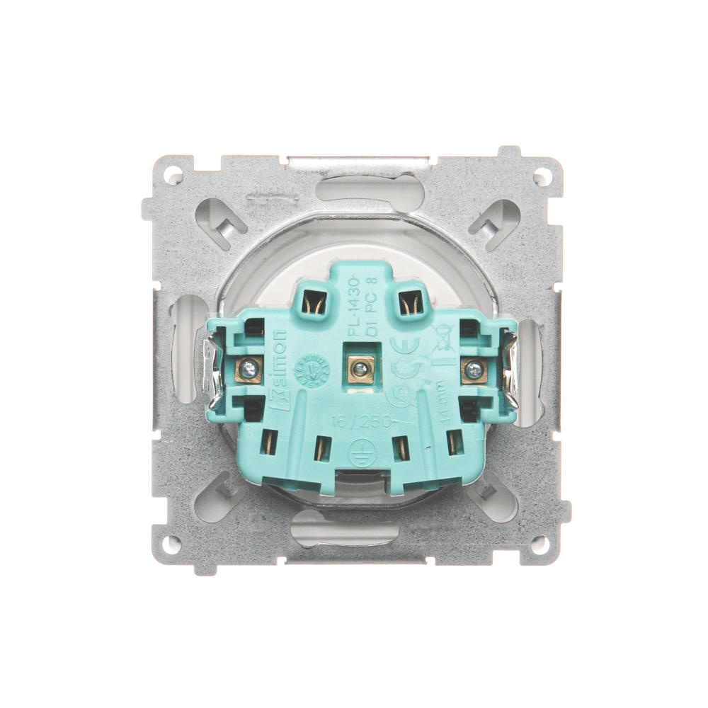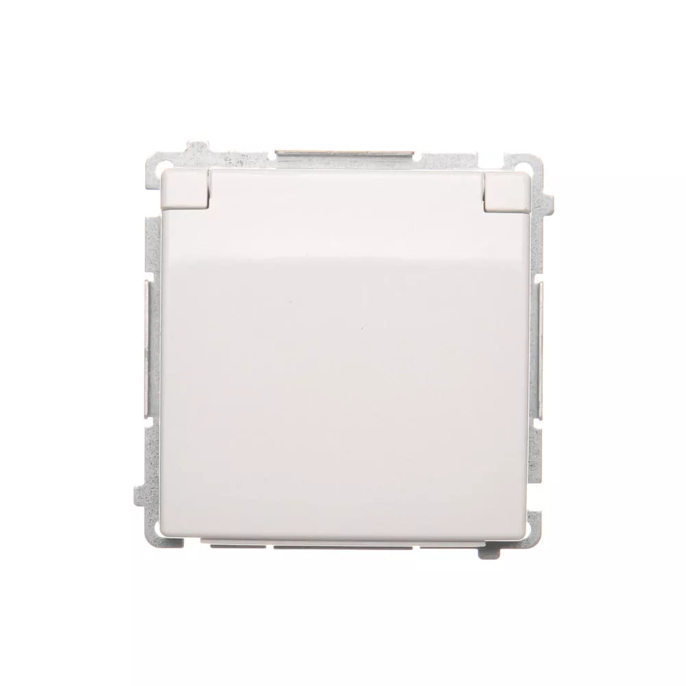Simon Basic WMUW-50111x-1021 Gniazdo wtyczkowe z uziemieniem (moduł), z przesłonami torów prądowych, bryzgoszczelne IP44, 16A, 250V~, zaciski śrubowe; biały