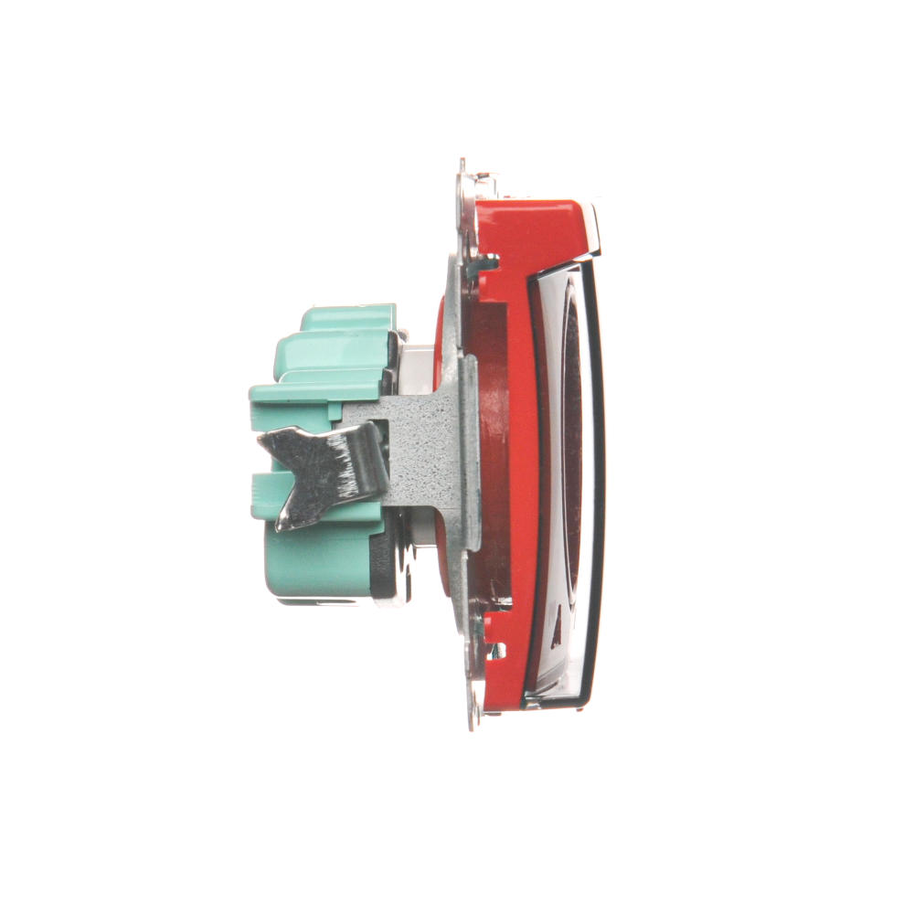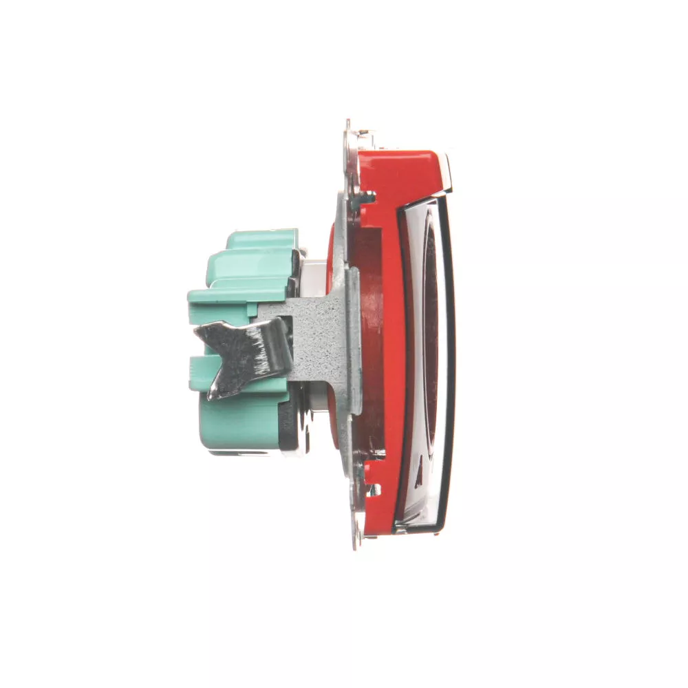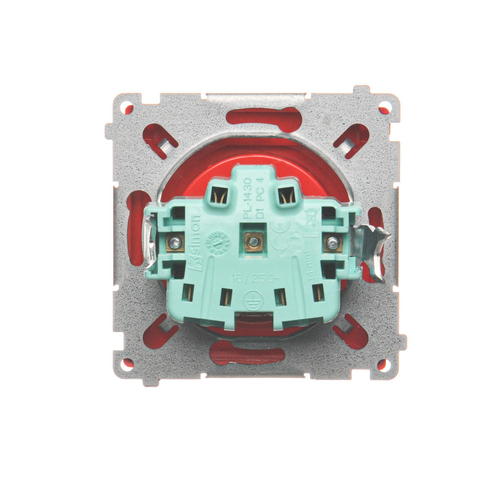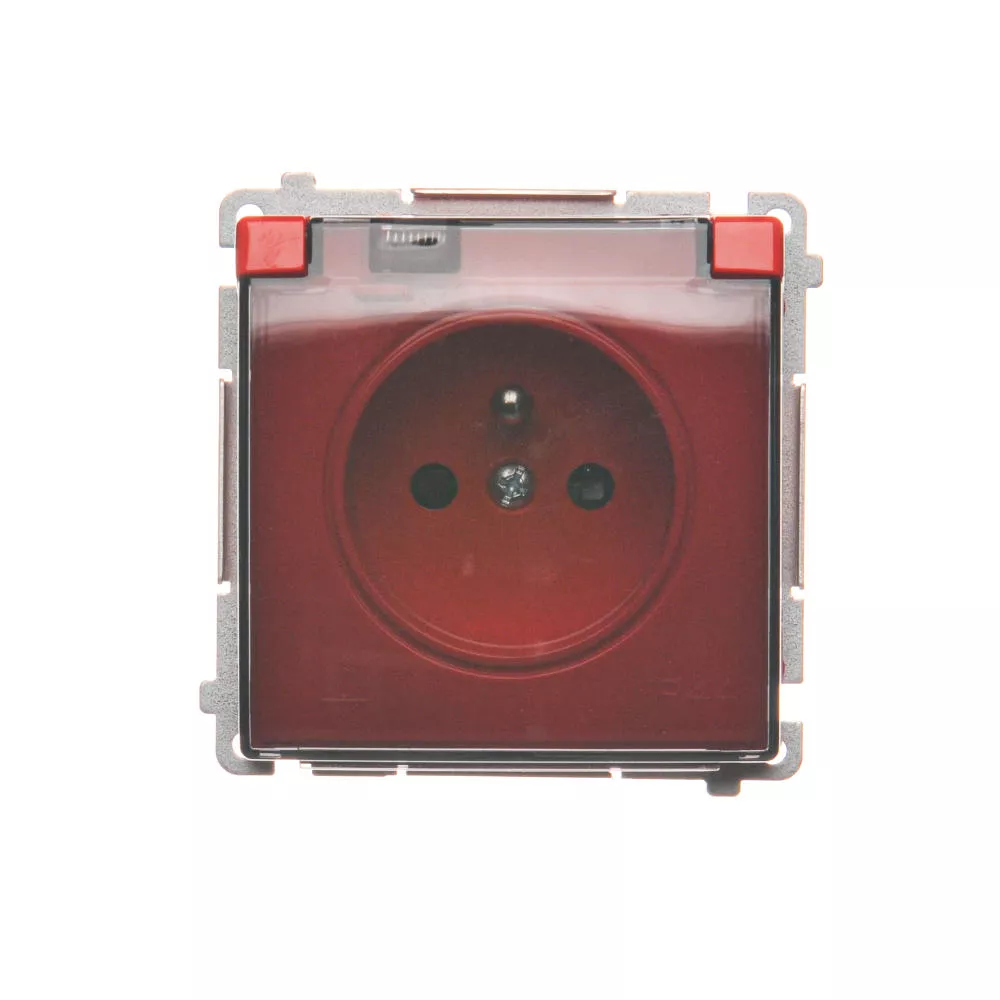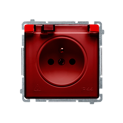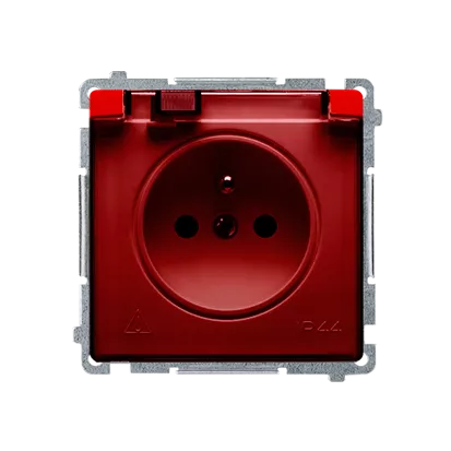 Simon Basic WMUW-53111x-A021 Gniazdo wtyczkowe z uziemieniem, z przesł. torów prądowych, bryzgoszczelne IP44 (moduł) 16A, 250V~, zaciski śrubowe, klapka transp.; czerwone