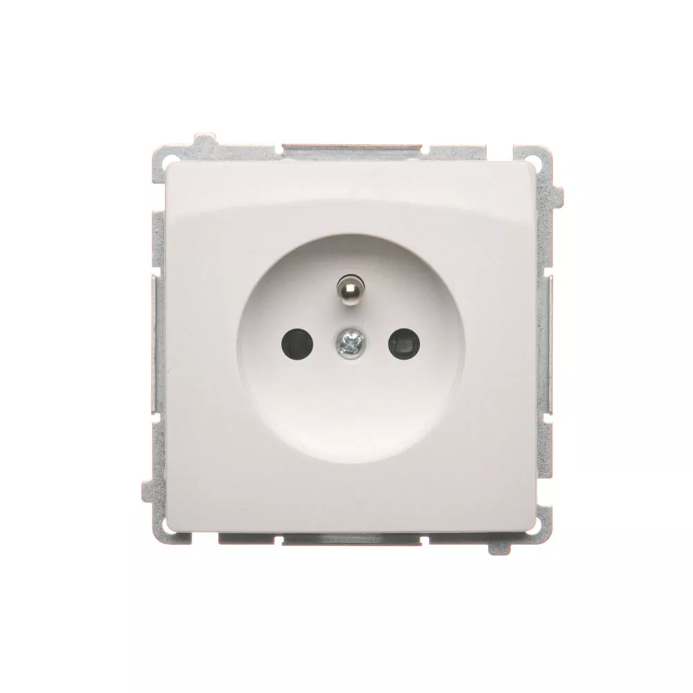 Simon Basic WMUW-00111C-1021 Gniazdo wtyczkowe pojedyncze z uziemieniem (moduł) 16A, 250V~ z przesłonami torów prądowych, szybkozłącza; biały