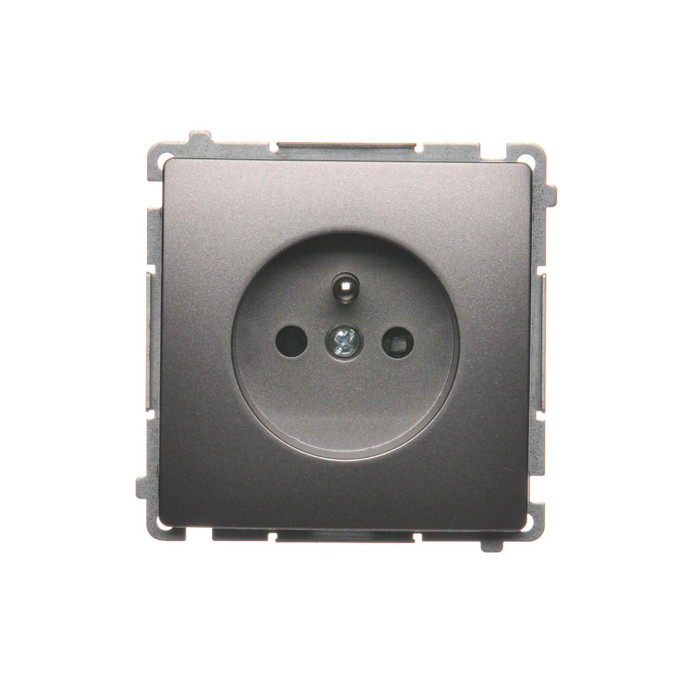 Simon Basic WMUW-00111C-J021 Gniazdo wtyczkowe pojedyncze z uziemieniem (moduł) 16A, 250V~ z przesłonami torów prądowych, szybkozłącza; stal inox