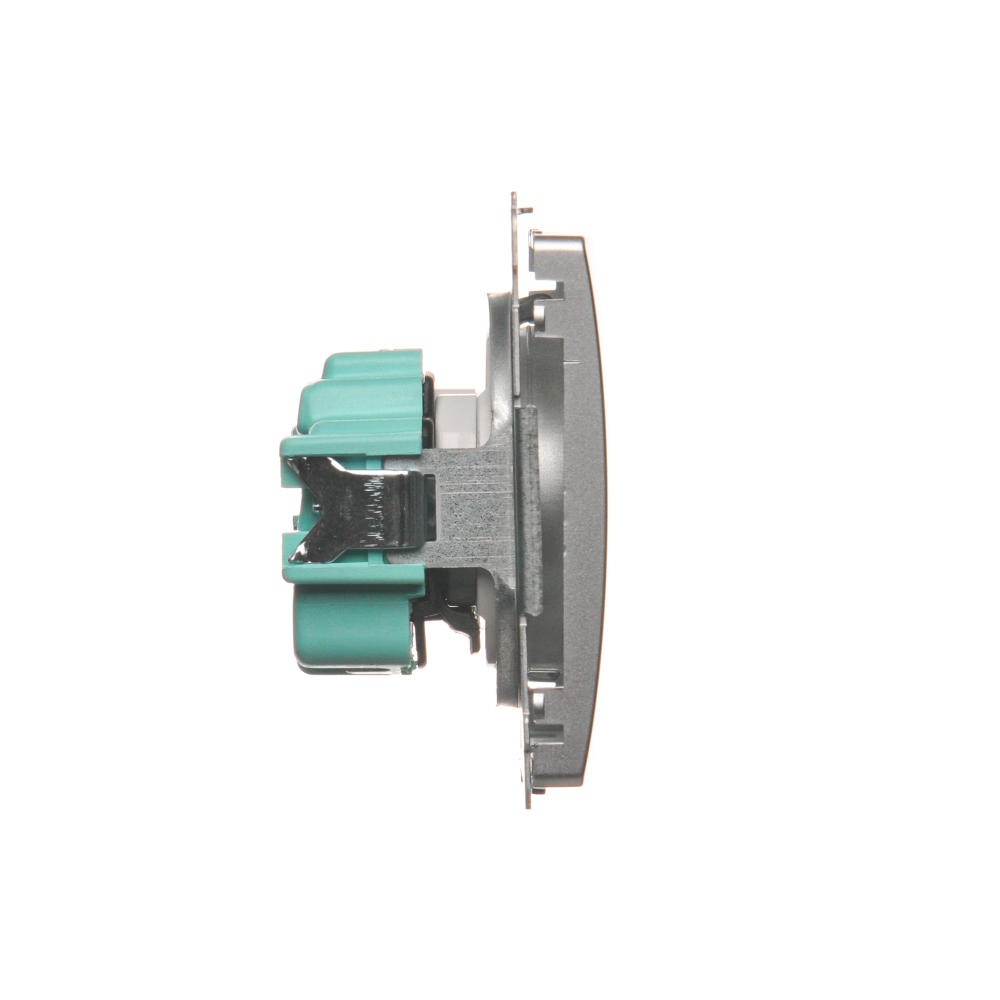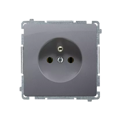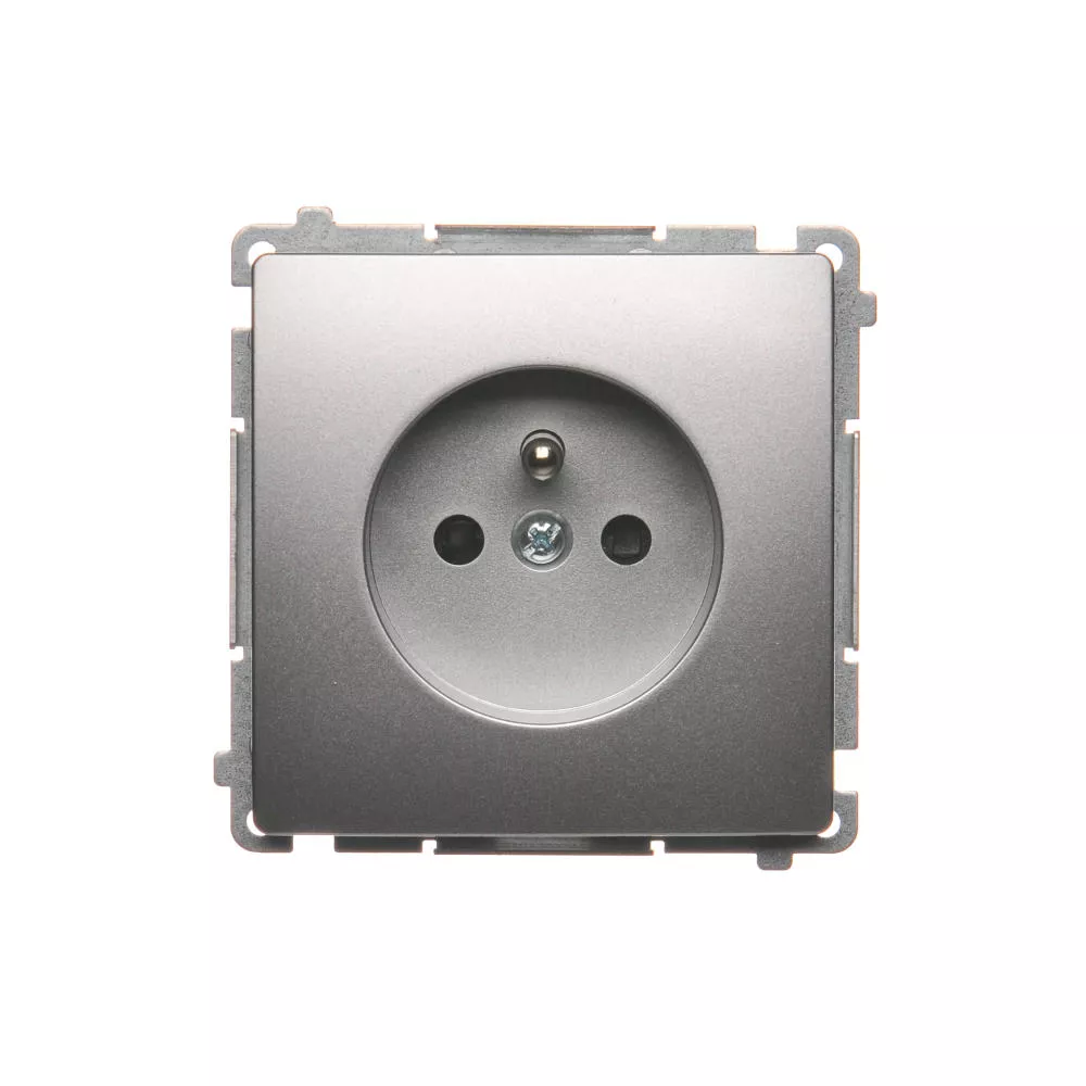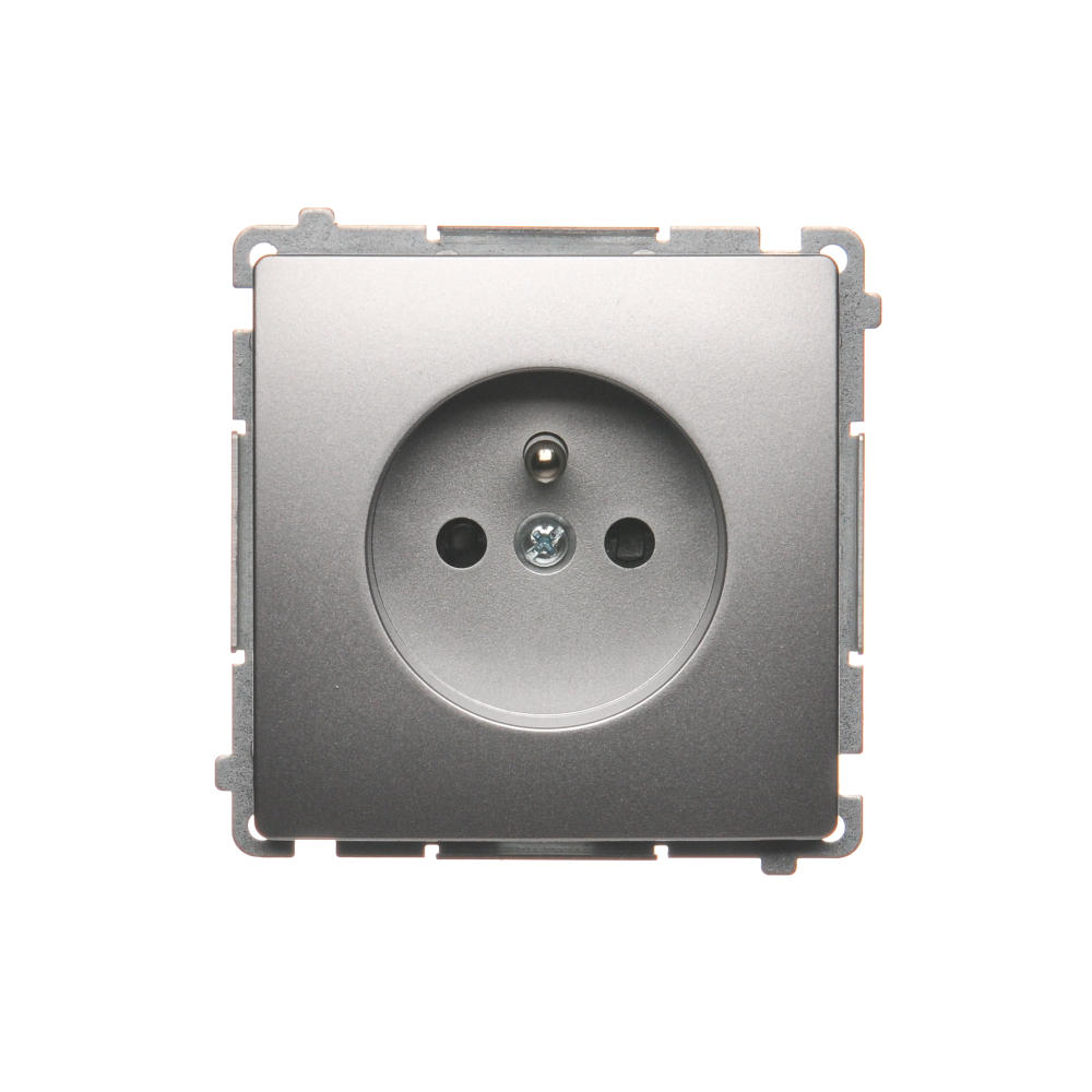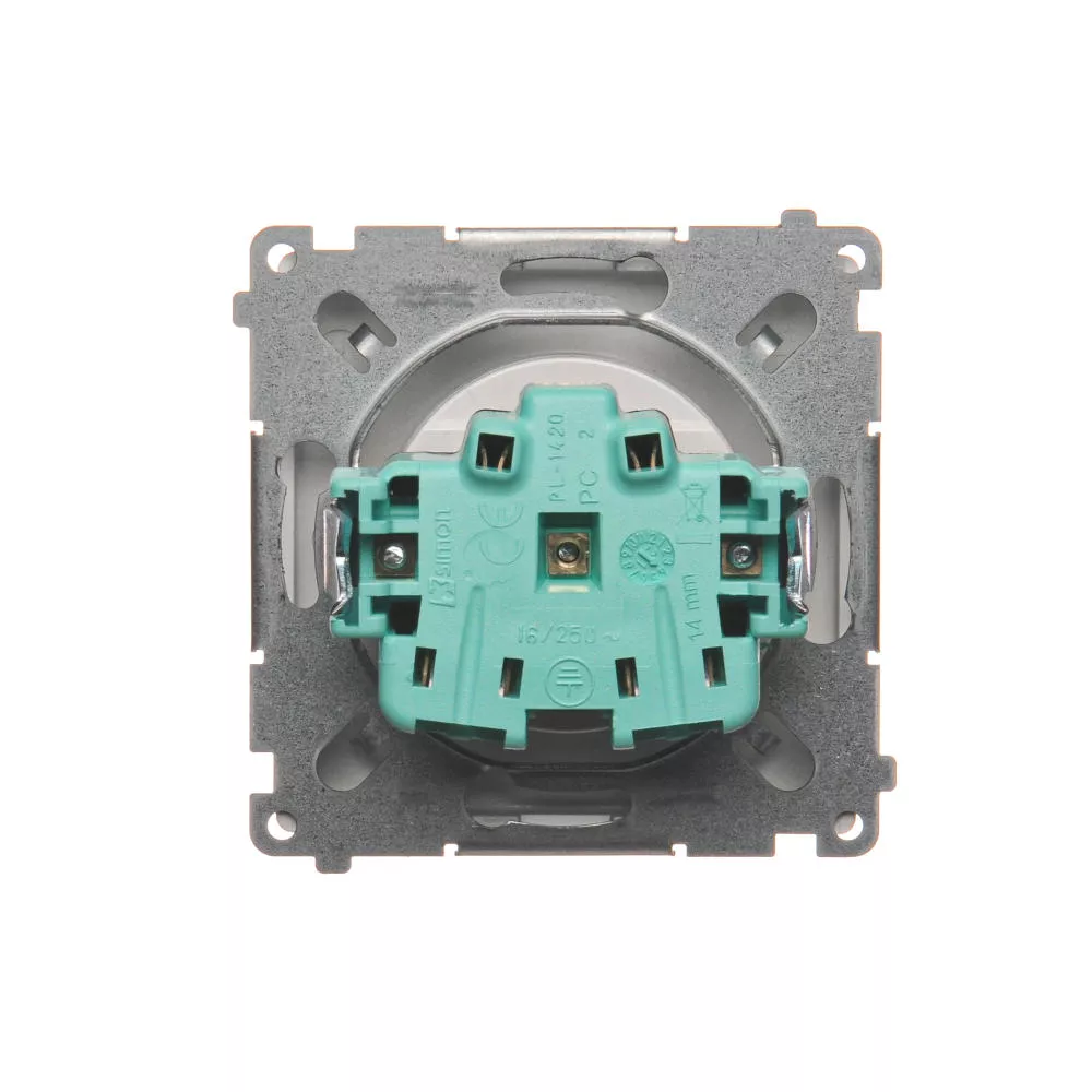Simon Basic WMUW-00111C-4021 Gniazdo wtyczkowe pojedyncze z uziemieniem (moduł) 16A, 250V~ z przesłonami torów prądowych, szybkozłącza; srebrny mat