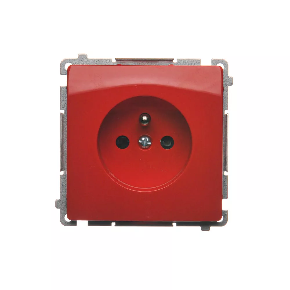 Simon Basic WMUW-00111x-A021 Gniazdo wtyczkowe z uziemieniem (moduł), z przesłonami torów prądowych, 16A, 250V~, zaciski śrubowe; czerwone