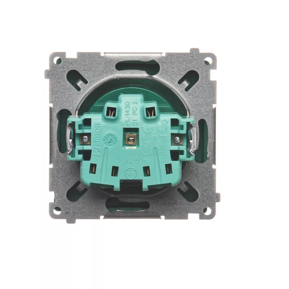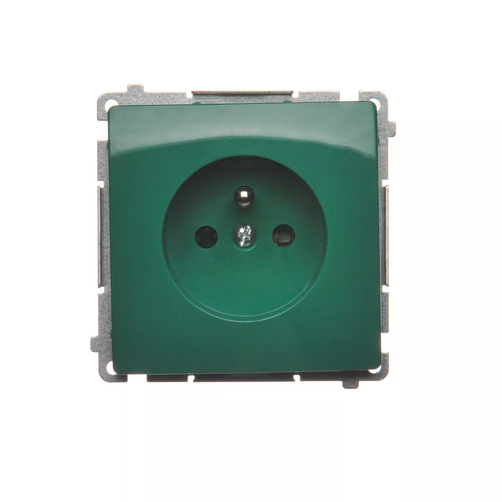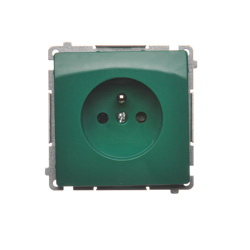 Simon Basic WMUW-00111x-Z021 Gniazdo wtyczkowe z uziemieniem (moduł), z przesłonami torów prądowych, 16A, 250V~, zaciski śrubowe; zielone