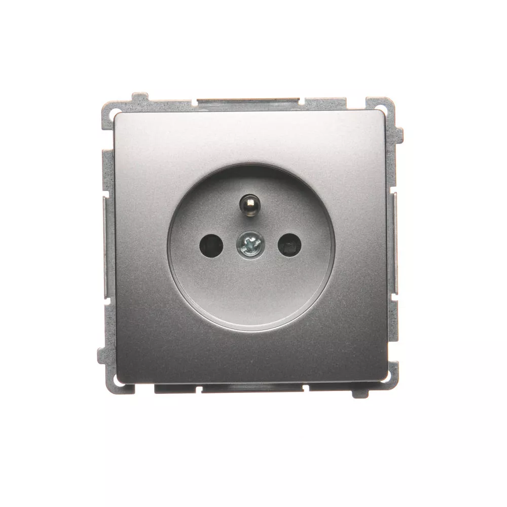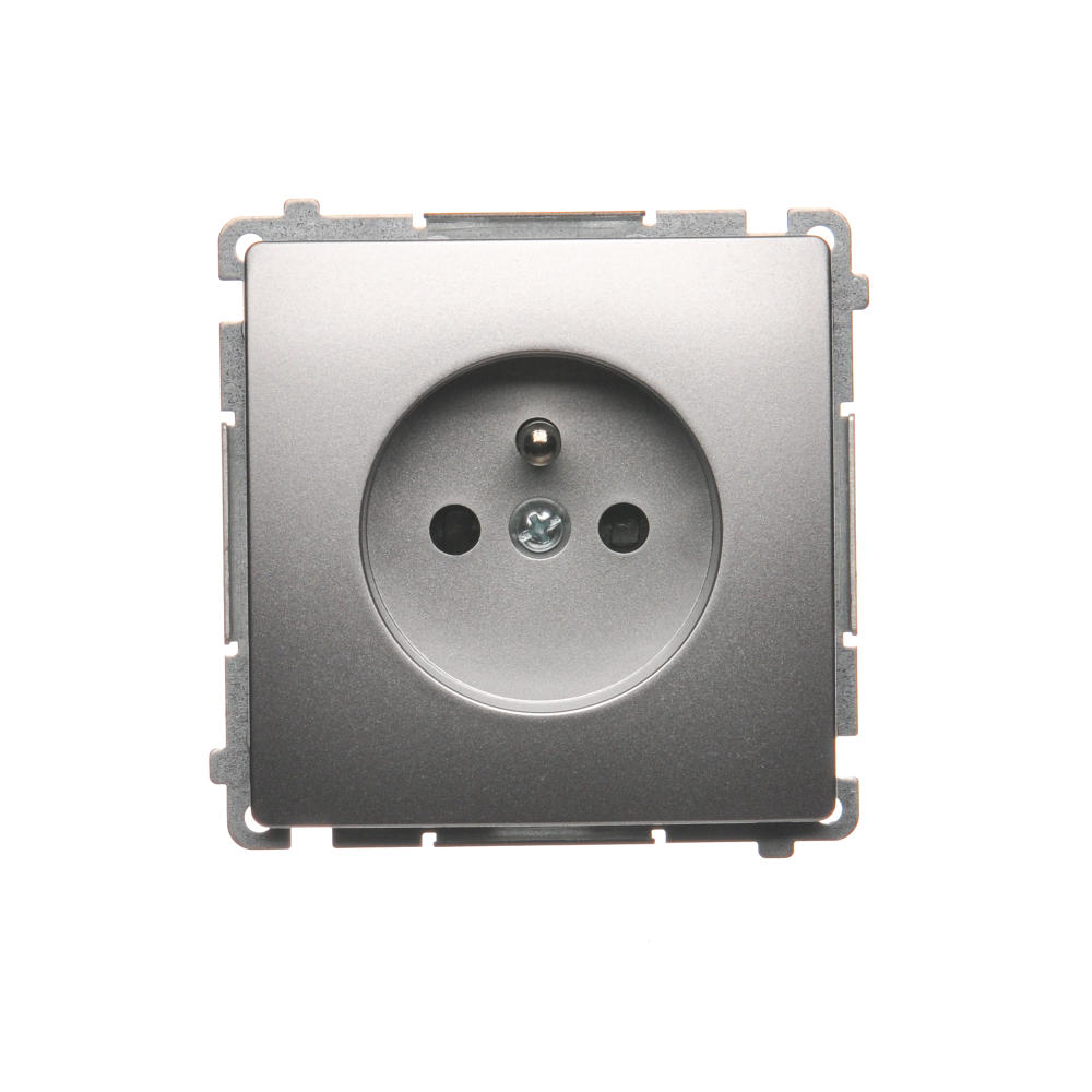 Simon Basic WMUW-00111x-4021 Gniazdo wtyczkowe z uziemieniem (moduł), z przesłonami torów prądowych, 16A, 250V~, zaciski śrubowe; srebrny mat