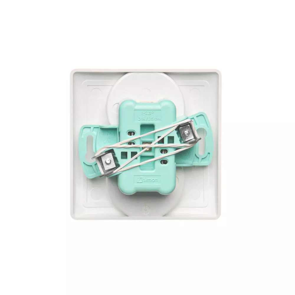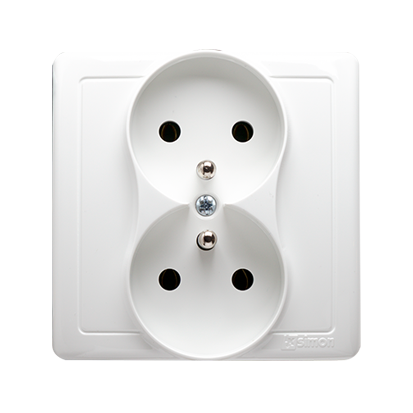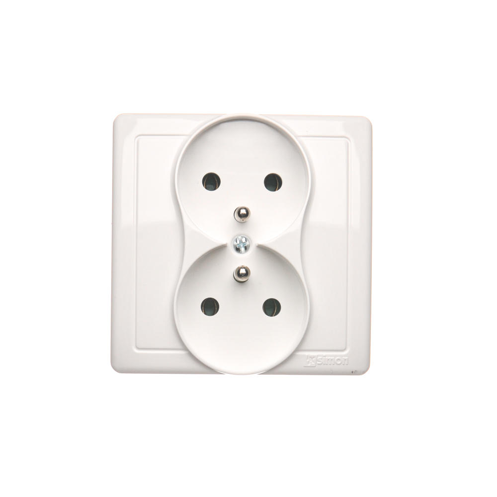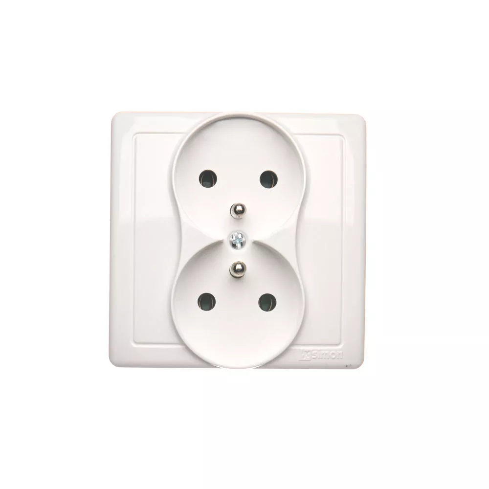 Simon Basic WMUW-10210x-1011 Gniazdo wtyczkowe z uziemieniem podwójne, monoblok, 16A, 250V~, zaciski śrubowe; biały Kompletne - nie do ramek