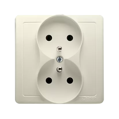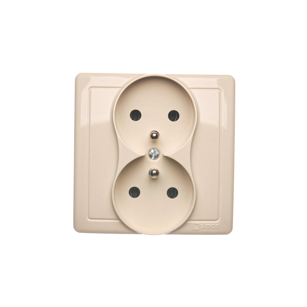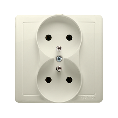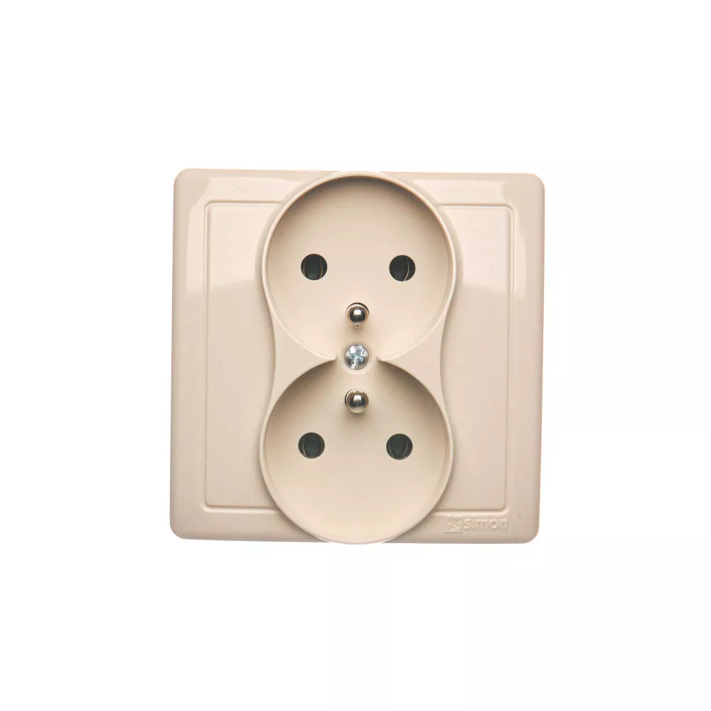 Simon Basic WMUW-10210x-9011 Gniazdo wtyczkowe z uziemieniem podwójne, monoblok, 16A, 250V~, zaciski śrubowe; beż Kompletne - nie do ramek
