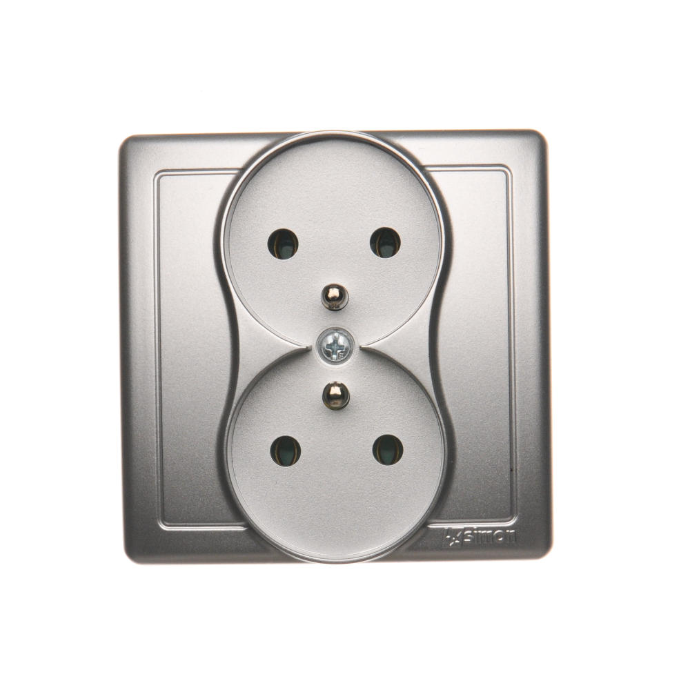 Simon Basic WMUW-10210x-4011 Gniazdo wtyczkowe z uziemieniem podwójne, monoblok, 16A, 250V~, zaciski śrubowe; srebrny mat Kompletne - nie do ramek