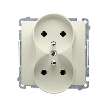 Simon Basic WMUW-00210M-9011 Gniazdo wtyczkowe podwójne z uziemieniem (moduł), Σ16A, 250V~, zaciski śrubowe; beż