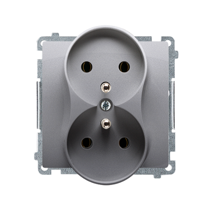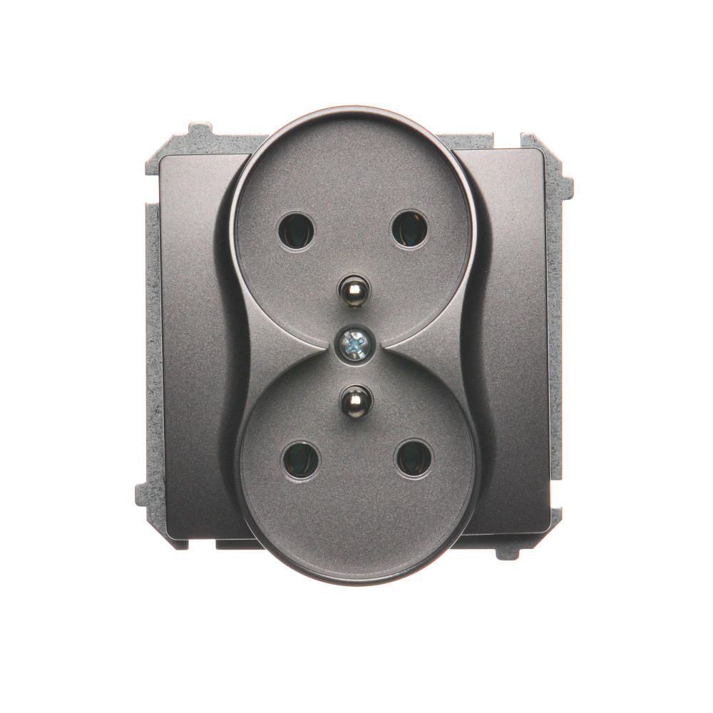 Simon Basic WMUW-00210M-J011 Gniazdo wtyczkowe podwójne z uziemieniem (moduł), Σ16A, 250V~, zaciski śrubowe; stal inox