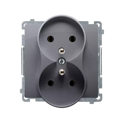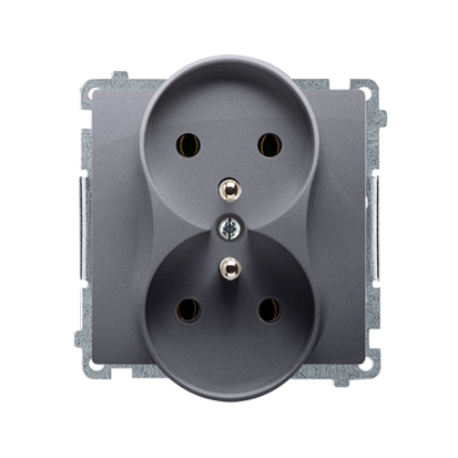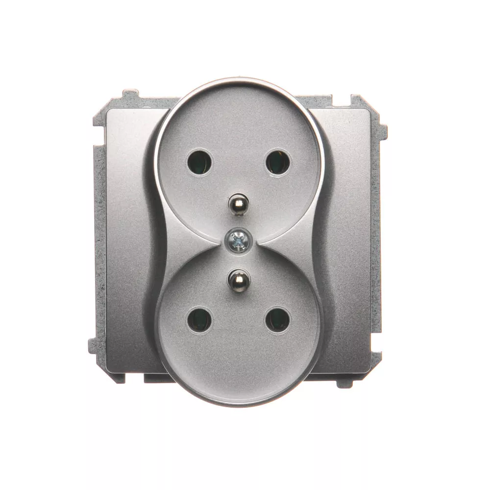 Simon Basic WMUW-00210M-4011 Gniazdo wtyczkowe podwójne z uziemieniem (moduł), Σ16A, 250V~, zaciski śrubowe; srebrny mat