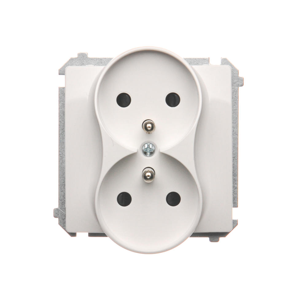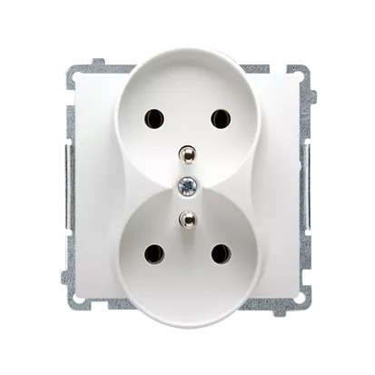 Simon Basic WMUW-00211M-1011 Gniazdo wtyczkowe podwójne z uziemieniem (moduł), z przesłonami torów prądowych, Σ16A, 250V~, zaciski śrubowe; biały