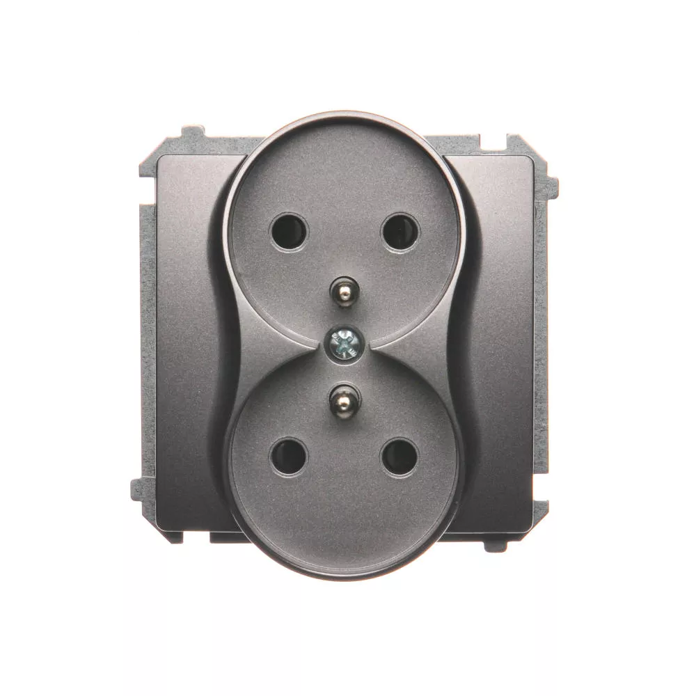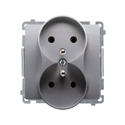 Simon Basic WMUW-00211M-J011 Gniazdo wtyczkowe podwójne z uziemieniem (moduł), z przesłonami torów prądowych, Σ16A, 250V~, zaciski śrubowe; stal inox