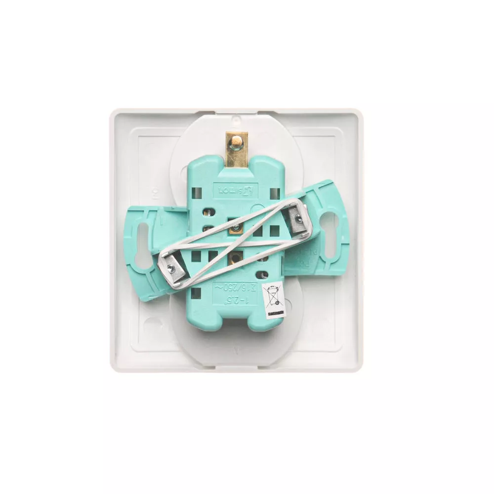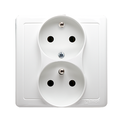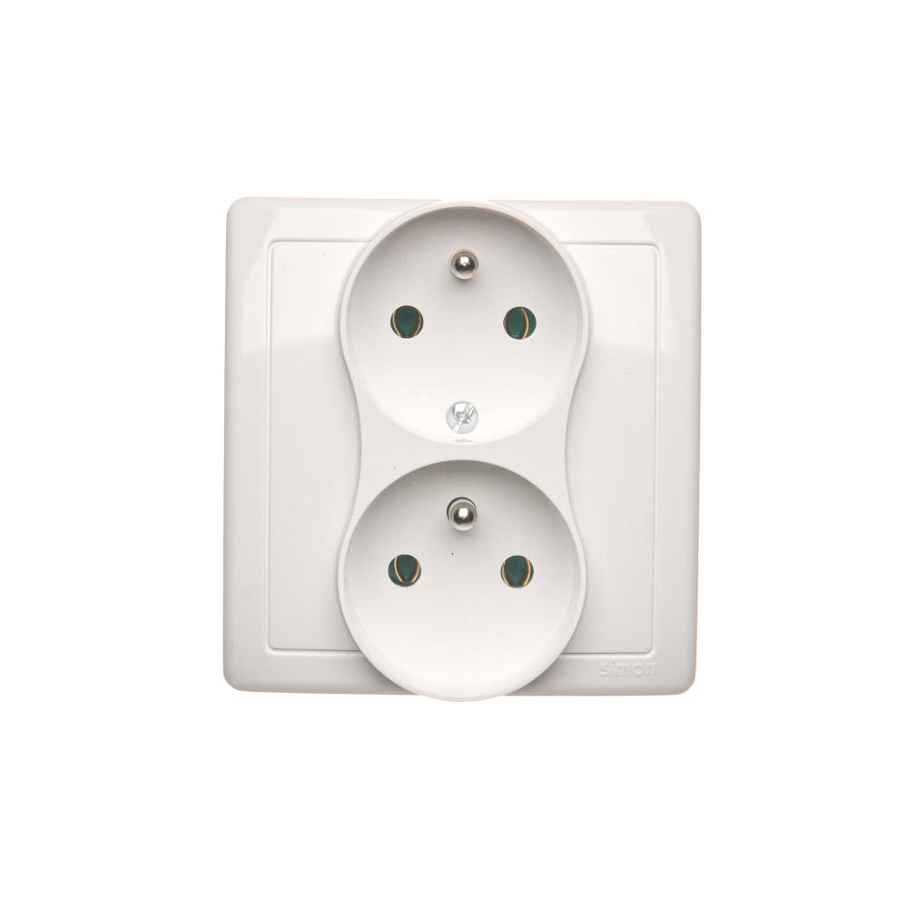 Simon Basic WMBW-102101-1011 Gniazdo wtyczkowe z uziemieniem podwójne, z funkcją niezmienności faz, 16A, 250V~, zaciski śrubowe. Kompletne - nie do ramek; biały
