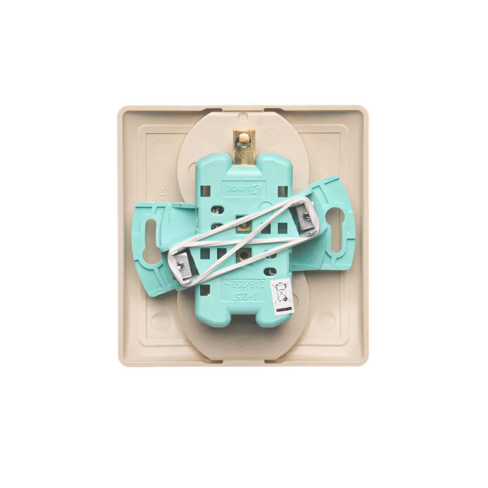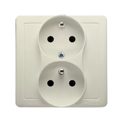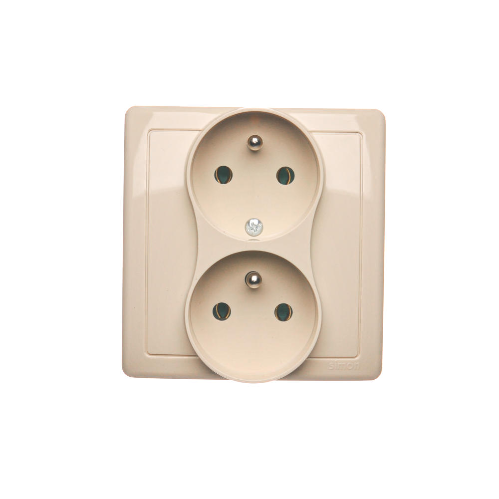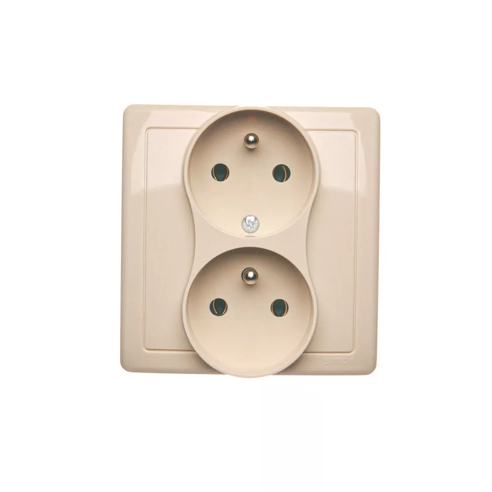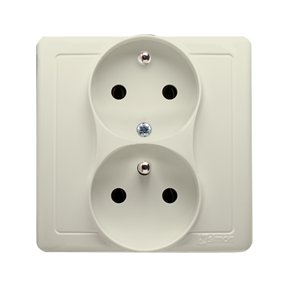 Simon Basic WMBW-102101-9011 Gniazdo wtyczkowe z uziemieniem podwójne, z funkcją niezmienności faz, 16A, 250V~, zaciski śrubowe. Kompletne - nie do ramek; beż