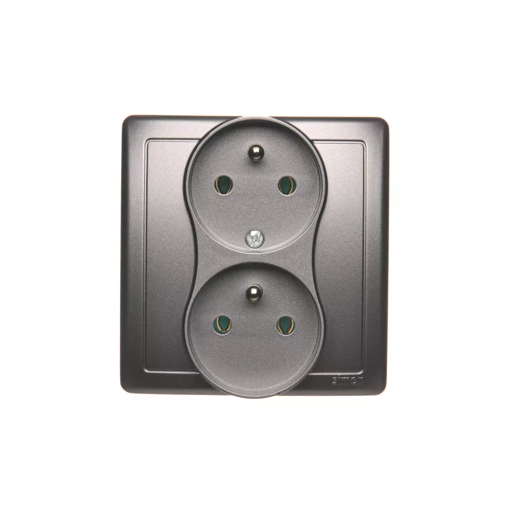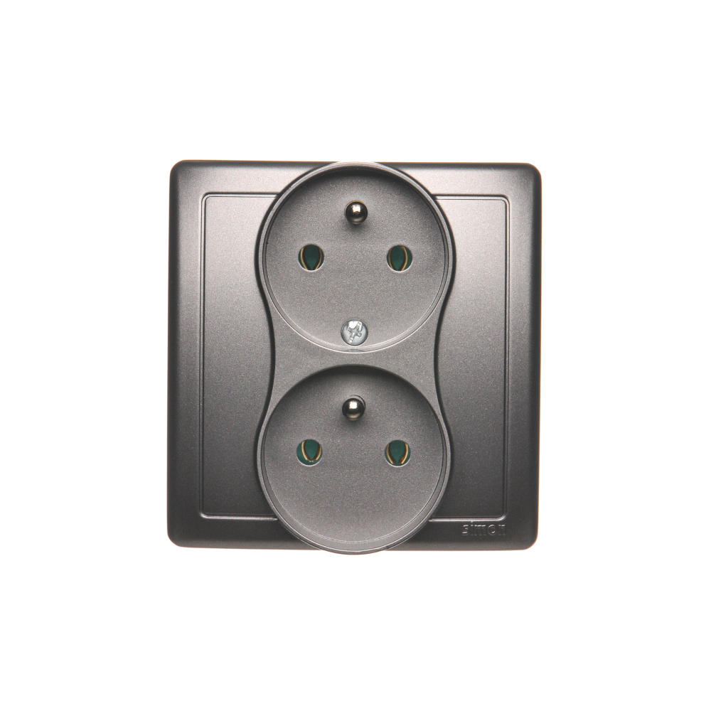 Simon Basic WMBW-102101-J011 Gniazdo wtyczkowe z uziemieniem podwójne, z funkcją niezmienności faz, 16A, 250V~, zaciski śrubowe. Kompletne - nie do ramek; stal inox